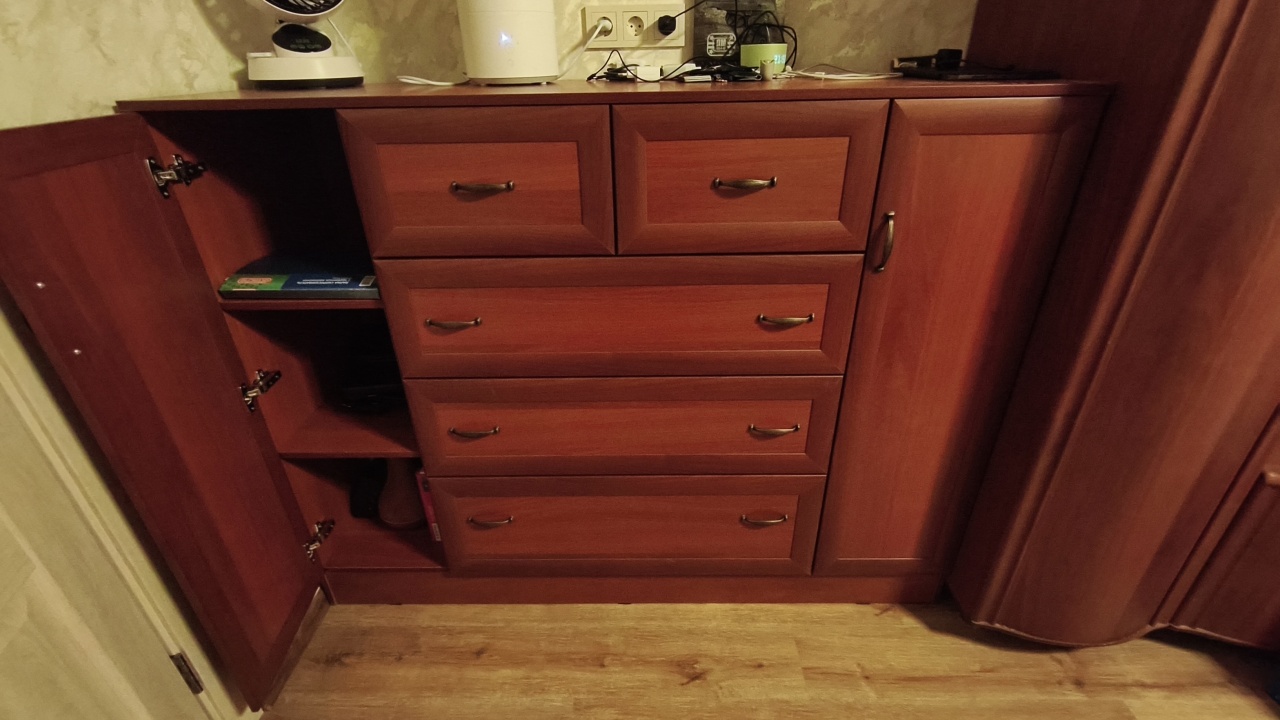 Спасибо за прекрасный комод. Комод очень вместительный, качественная фурнитура идёт в стандарте. Собрали сами, по сборке нареканий нет. Используем, как ТВ тумбу. По цвету идеально вписался к уже имеющейся стенке👍 Заказ 00000339383, изделие Комод Иван 2.4+2 ящика BMS (1560х900х500)