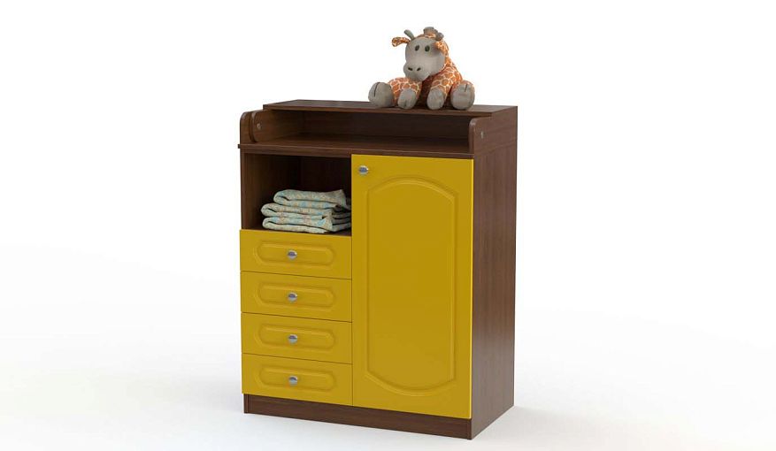 Комод пеленальный Закат 3 BMS с классическим фрезерованным фасадом прост в уходе и хорошо смотрится в детских разного типа. Благодаря откидному пеленальному столику модель удобна для переодевания малыша и не занимает много места в сложенном виде. Для хранения средств гигиены и детских вещей комод оборудован нишей, четырьмя выдвижными ящиками и распашным отделением с полками. Купить комод пеленальный Закат 3 BMS с выбором цвета и размеров вы сможете в нашем интернет-магазине.