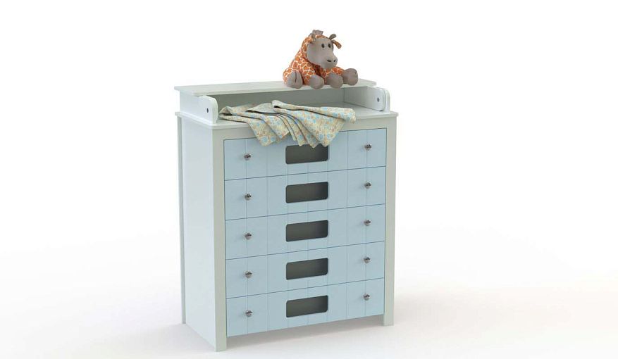 Пеленальный комод Веста Деко 2 BMS с декоративными накладками на фасаде и вертикальной фрезеровкой привлекает ярким дизайном и продуманным функционалом. Пять выдвижных ящиков с «окошками» и парными ручками-кнопками обеспечат детским вещам удобное хранение и хороший обзор. Откидной пеленальный столик вы сможете использовать по назначению или превратить в полку. Купить пеленальный комод Веста Деко 2 BMS и обустроить комфортное пространство для ухода за младенцем вам всегда поможет наш интернет-магазин.