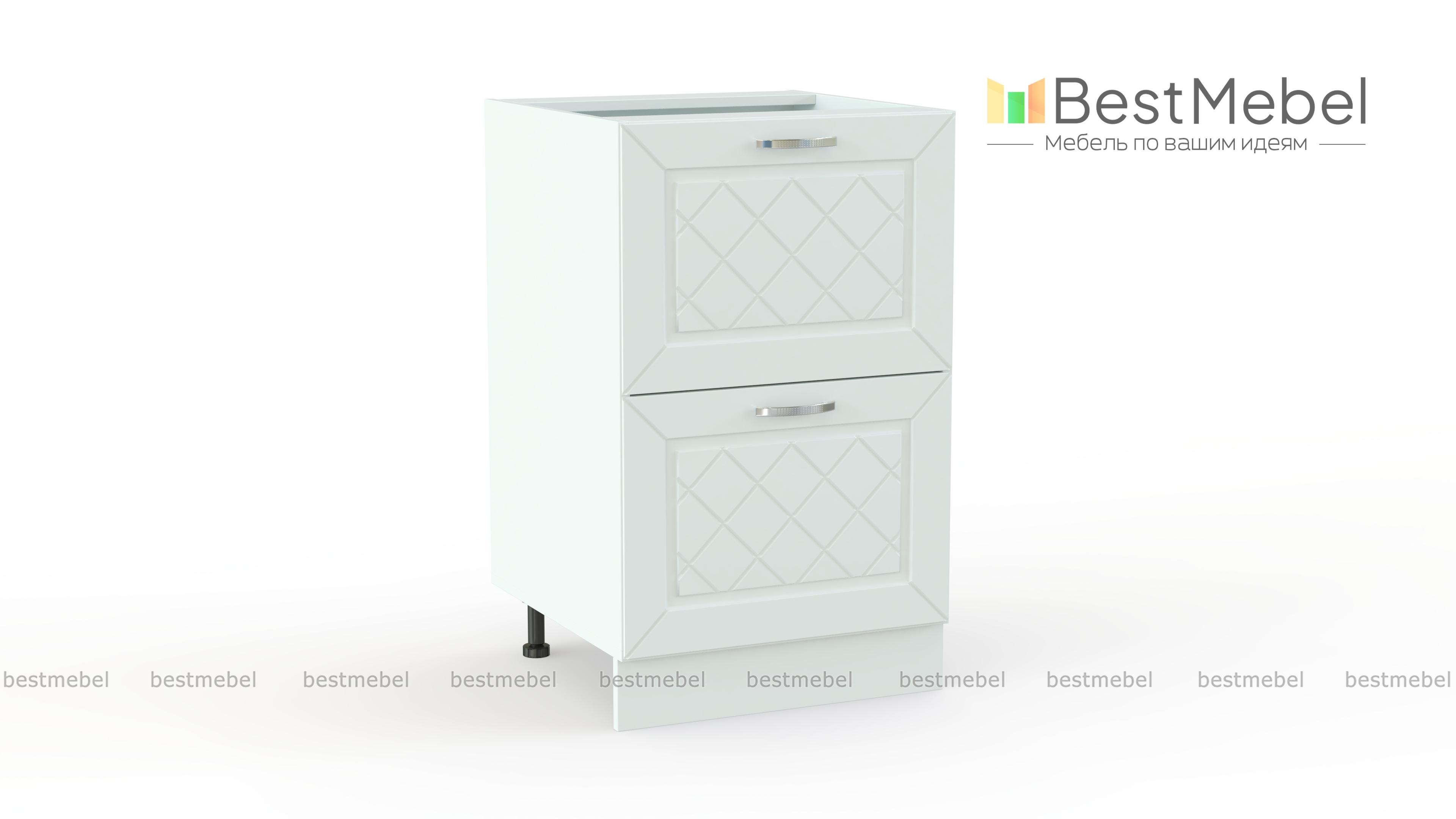 Шкаф нижний 2 ящика Агава BMS дополнит нижний ряд модулей кухонного гарнитура практичной системой хранения. Шкаф, оборудованный широкой столешницей и двумя просторными выдвижными ящиками, будет удобен для размещения как необходимых в готовке мелочей, так и крупных предметов и бытовой техники. Декорированные фрезеровкой ромбами фасады гармонично смотрятся в классическом интерьере. Купить шкаф нижний 2 ящика Агава BMS вы сможете по доступной цене в нашем интернет-магазине.