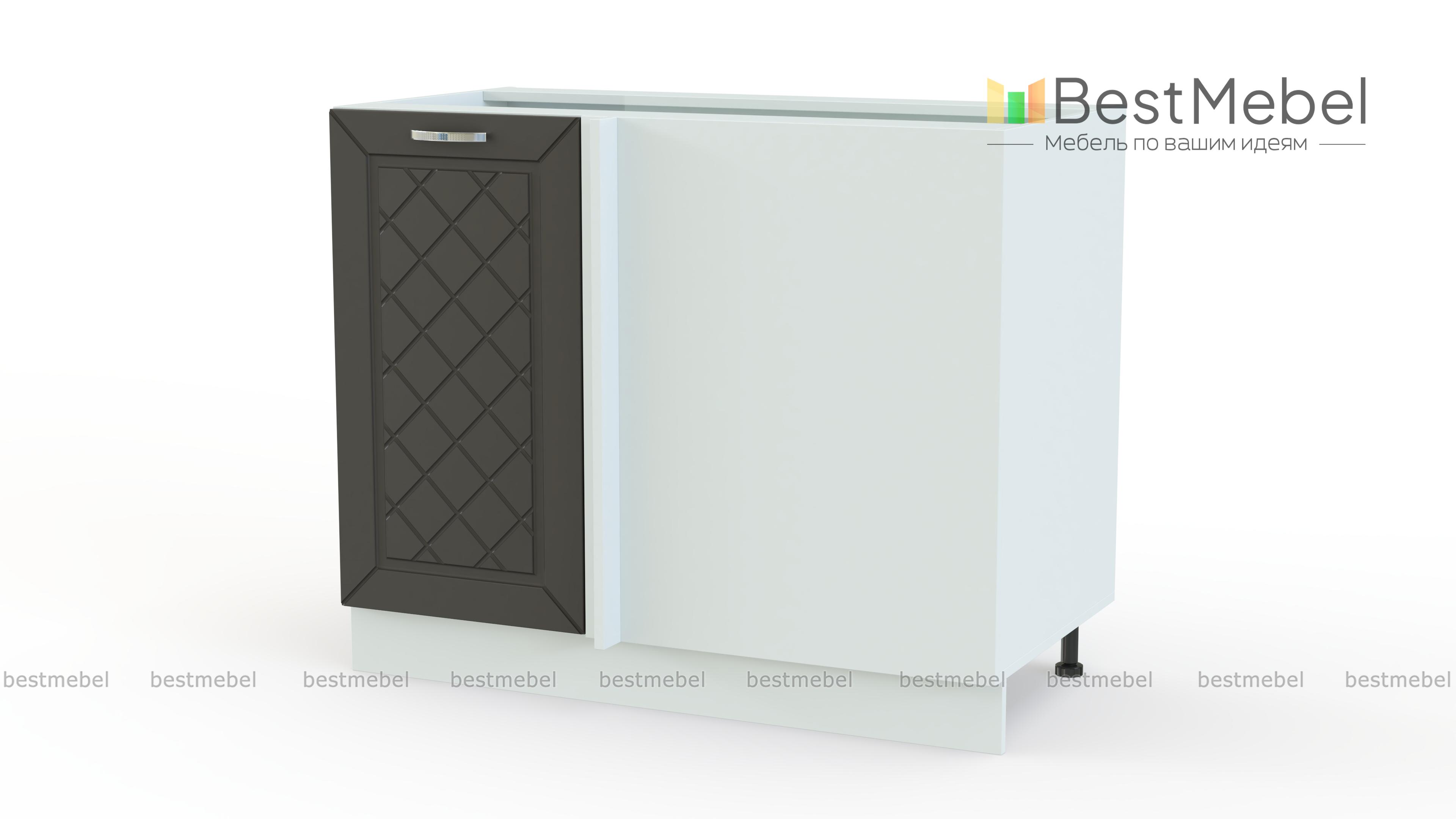 Шкаф нижний угловой прямой 1 дверь Агава BMS предназначен для стыковки модулей левого и правого крыла кухонного гарнитура. Модель отличается вместительностью и оборудована с фронтальной стороны открытой секцией и распашной глухой дверцей. Просторное внутреннее отделение с полкой удобно для хранения продуктов, габаритной посуды и множества мелочей, а дополнительной рабочей поверхностью станет широкая столешница. Фасад выполнен в едином для всей серии классическом стиле. Купить шкаф нижний угловой прямой 1 дверь Агава BMS вы сможете быстро и просто в нашем интернет-магазине.