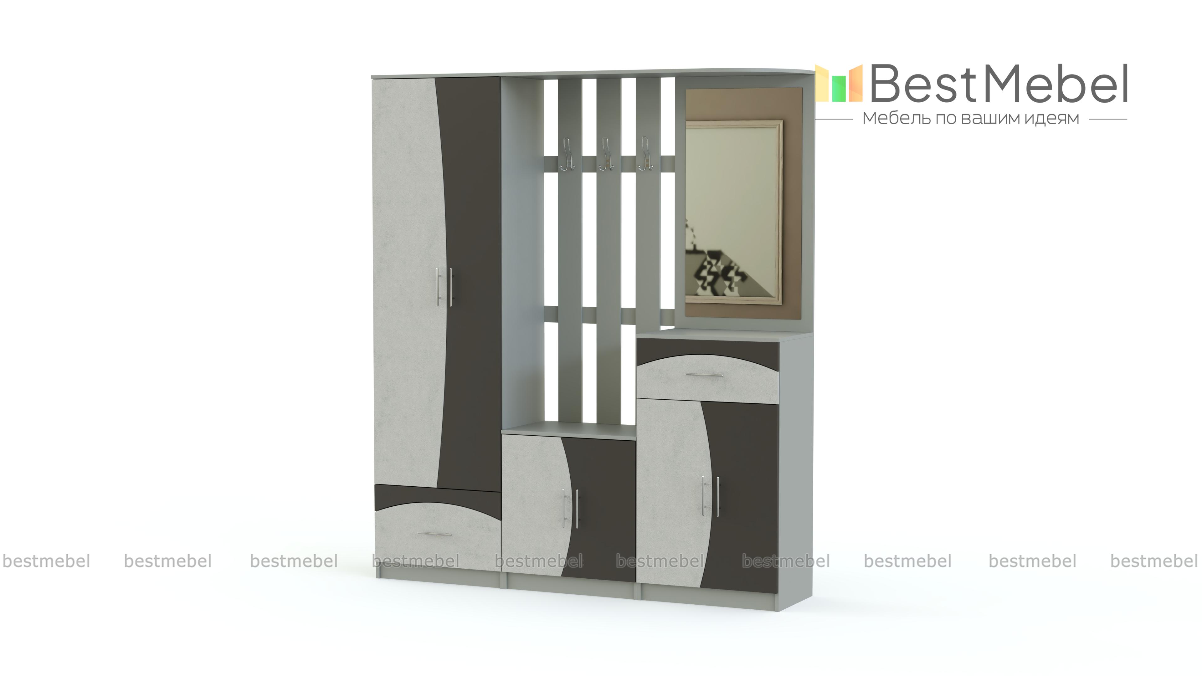 Стенка-прихожая «Идеал 28» BMS – комплект футуристичного дизайна, оригинальную расцветку которого непременно оценят поклонники современных интерьеров. Вместительность модели обеспечивают распашной шкаф, секция с тумбой и открытой вешалкой и высокая тумба, совмещенная с зеркалом. Необычно стилевое решение матовых фасадов – геометрический яркий рисунок на фоне светлого корпуса. Купить стенку-прихожую «Идеал 28» BMS по лучшей цене вы всегда сможете в нашем интернет-магазине.