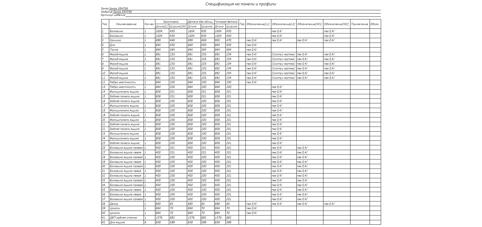 Параметры изделия: