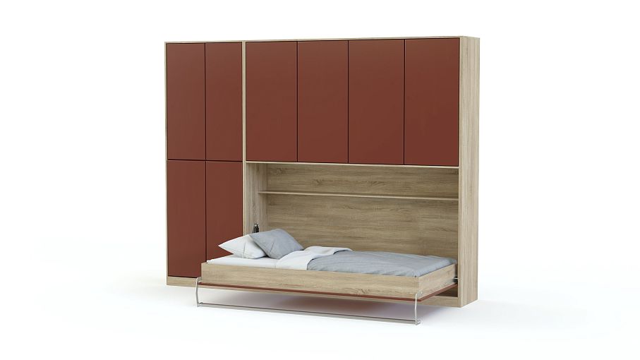 Мы не рекомендуем покупать пружинные матрасы к шкафу-кровати. Стоит отдавать предпочтение беспружинным изделиям. Это связано с тем, что поведение пружин в вертикальном положении матраса невозможно предсказать. Матрас быстро подвергается деформации и смещению слоев. Идеальным вариантом для откидной модели будет лёгкий беспружинный матрас, основу которого составляют современные материалы, не имеющие в составе пружины.