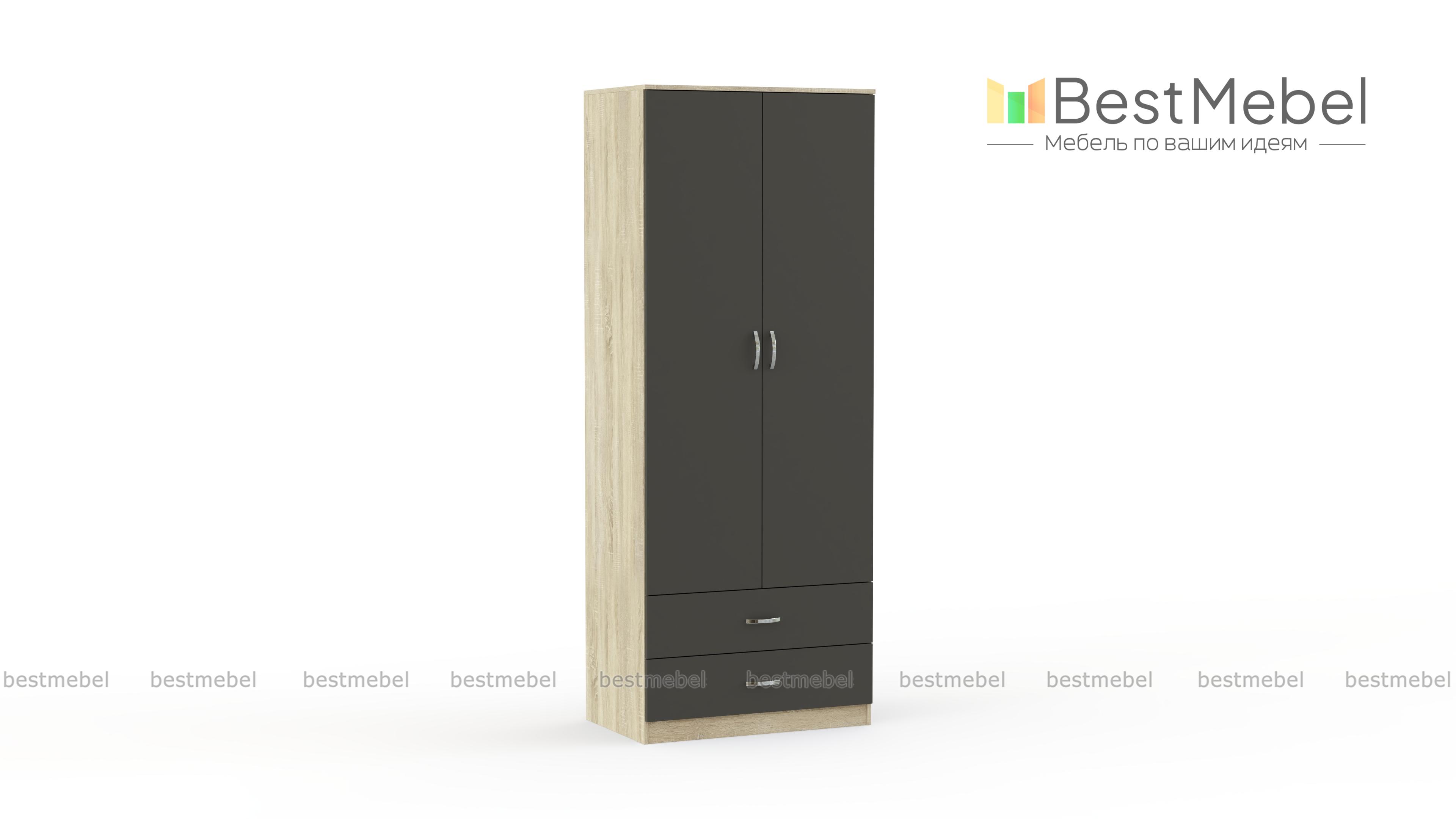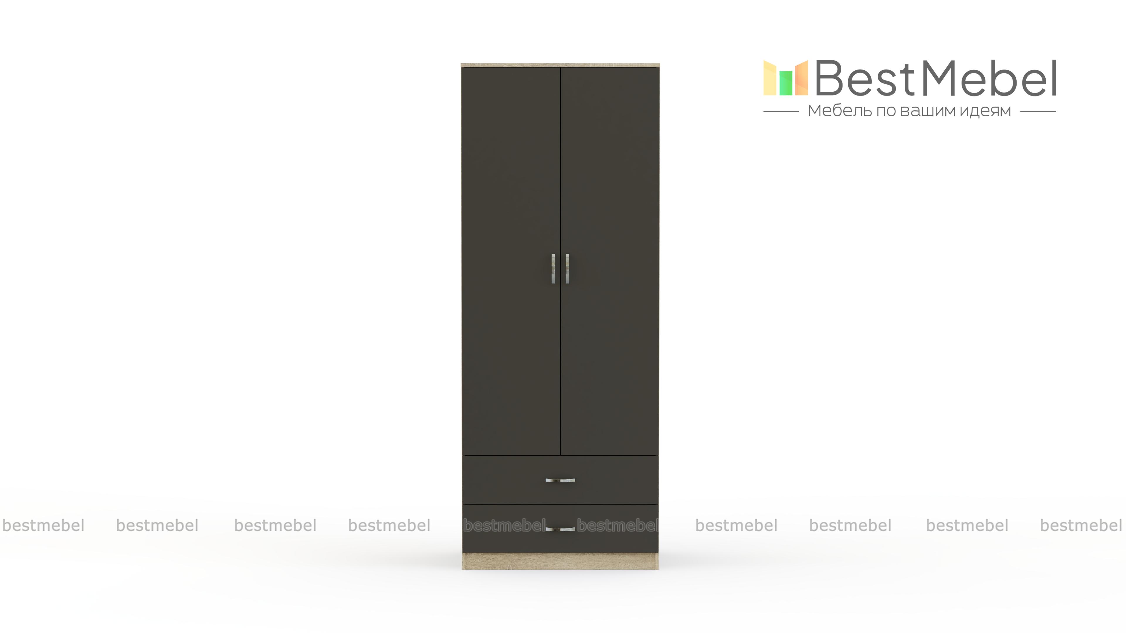 В стандартной комплектации шкаф имеет платяное отделение с полкой для шляп и штангой, 2 выдвижных ящика снизу.