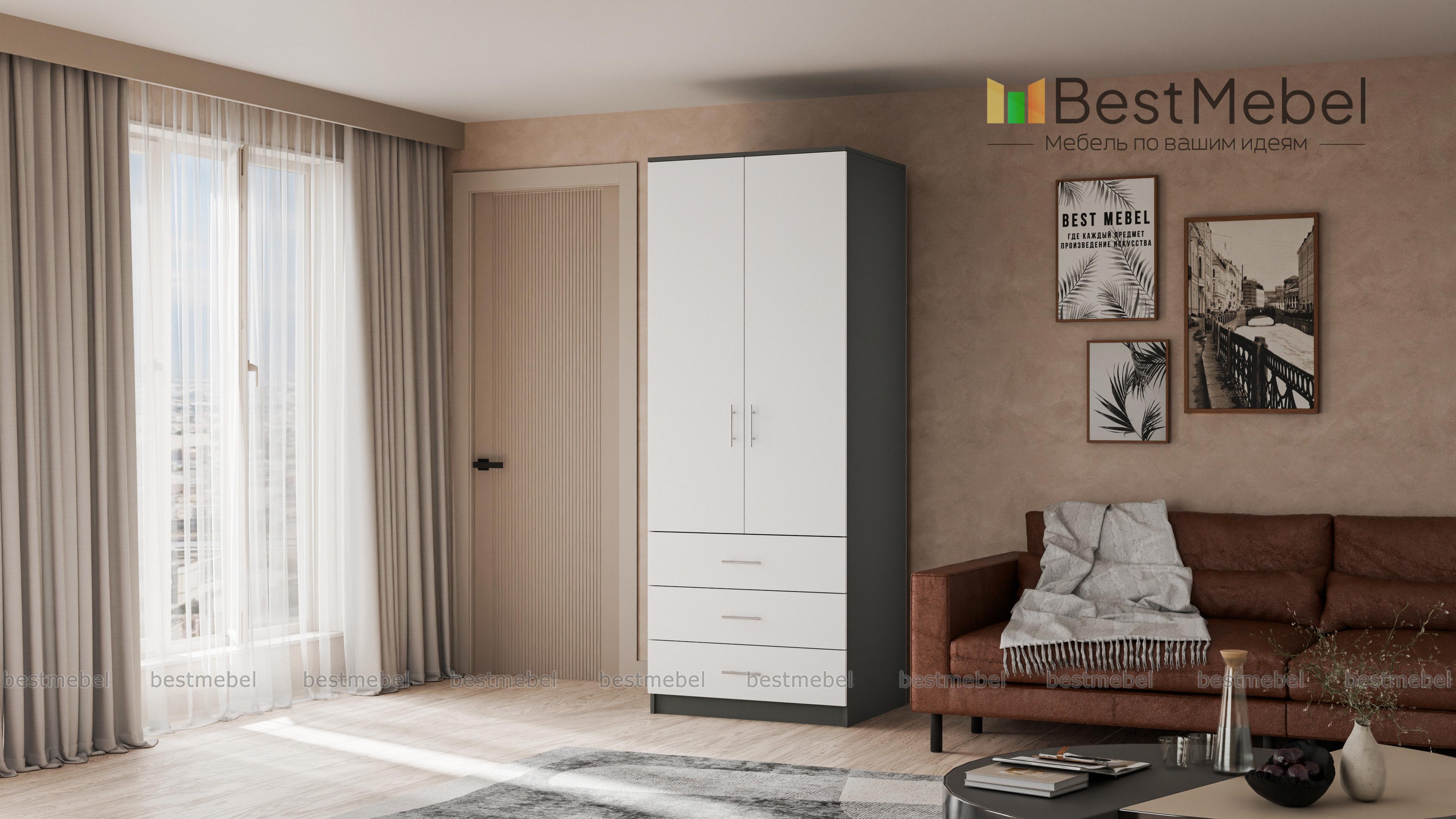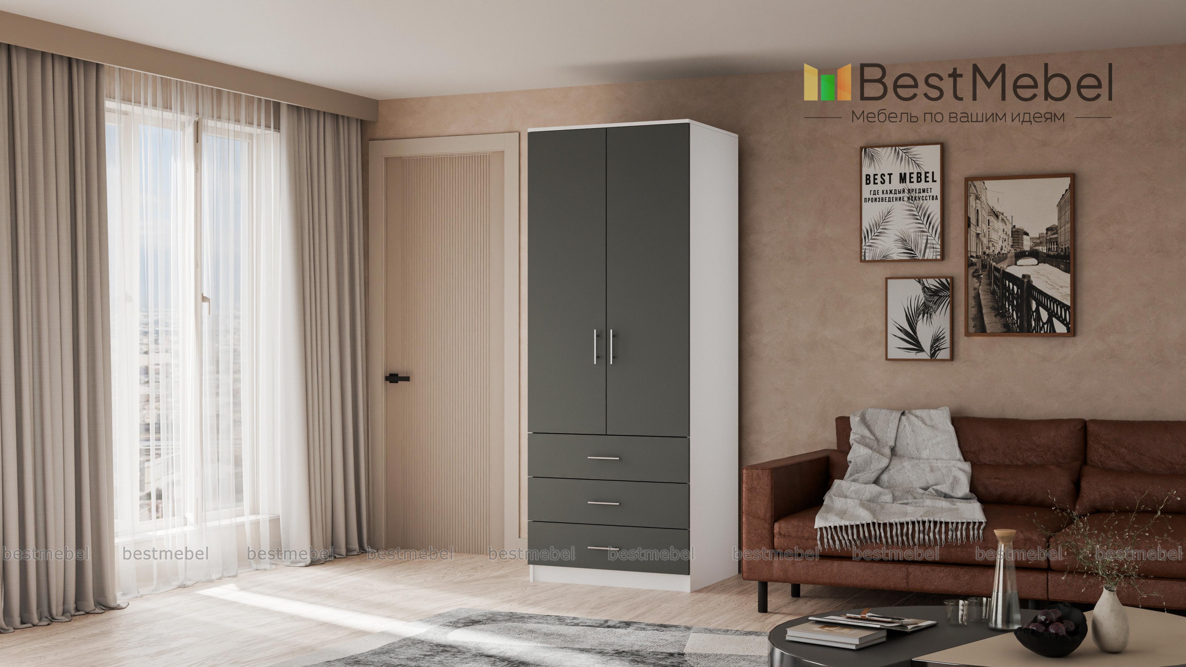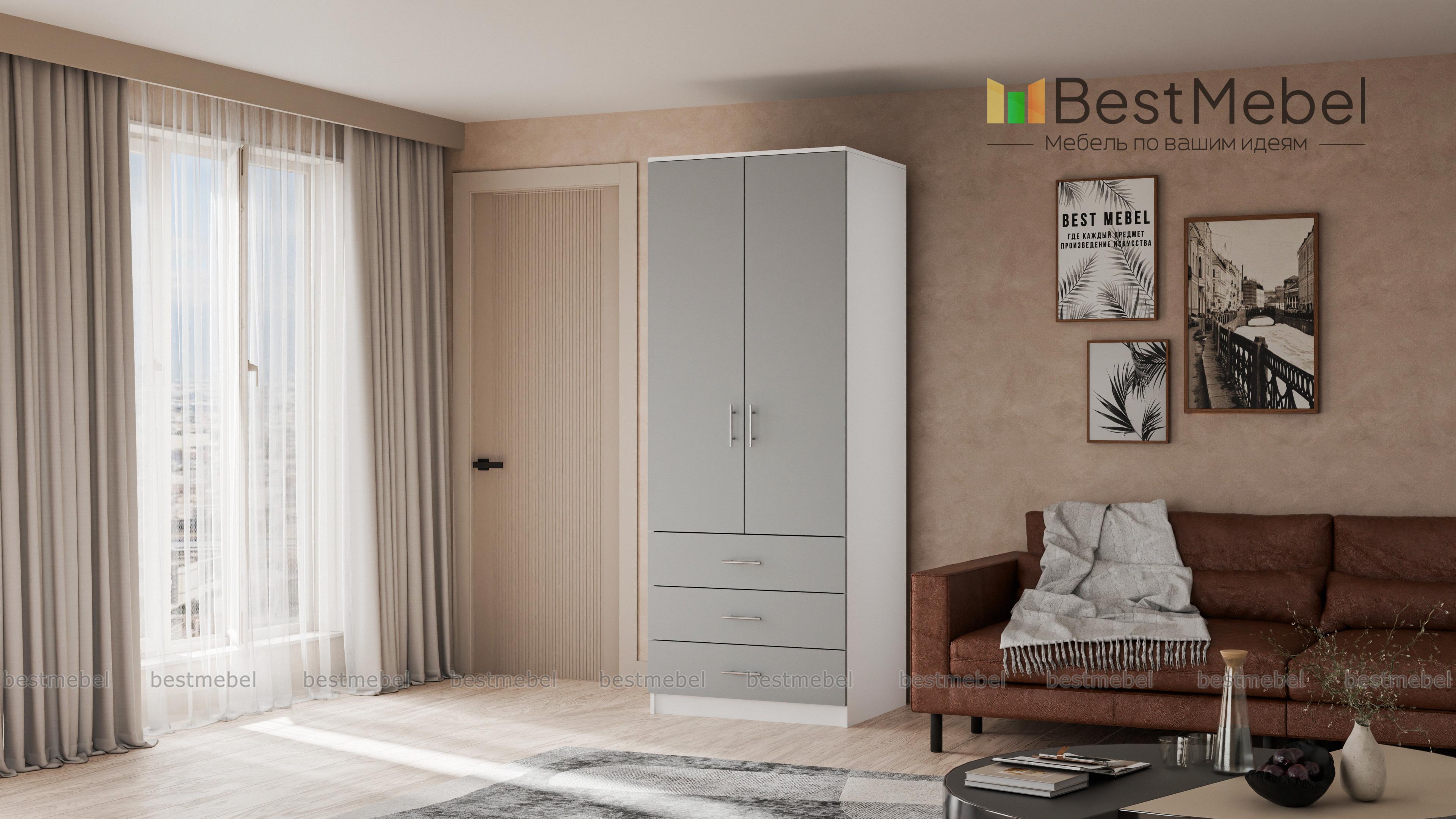 Привлекательная базовая модель отличается гармоничным сочетанием белого и серого цветов. Два больших и вместительных средних отделения предназначены для хранения верхней одежды. Шкаф 2.3 "ШАТУРА" получил три нижних выезжающих отделения для футболок, шортов и другой мелкой одежды. Отличительной особенностью модели являются интересные стальные ручки, получившие стильный дизайн. Купить шкаф 2.3 "ШАТУРА" Вы можете у нас по весьма выгодной цене.