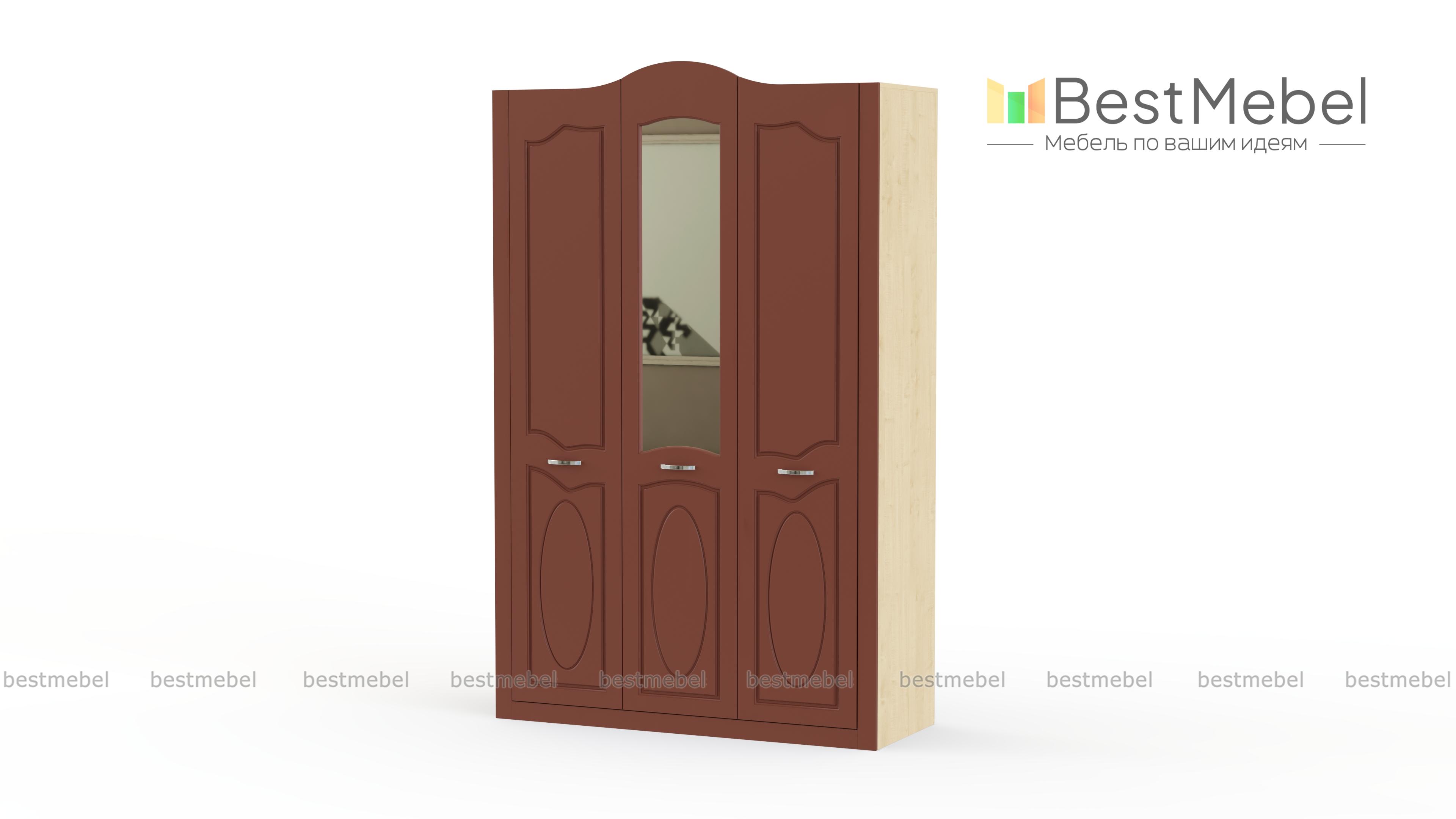 Шкаф 3-х дверный Ева BMS понравится поклонникам легких и светлых классических интерьеров. Изящная модель с фигурно вырезанными дверцами декорирована неброской фрезеровкой, зеркалом и элегантными ручками. Удобно разместить одежду, обувь и аксессуары помогут платяное отделение со штангой и вместительные полки. Простая и надежная конструкция будет радовать хозяев и гостей дома долгие годы. Купить шкаф 3-х дверный Ева BMS, подобрав оптимальный вариант расцветки, вы сможете в нашем интернет-магазине.