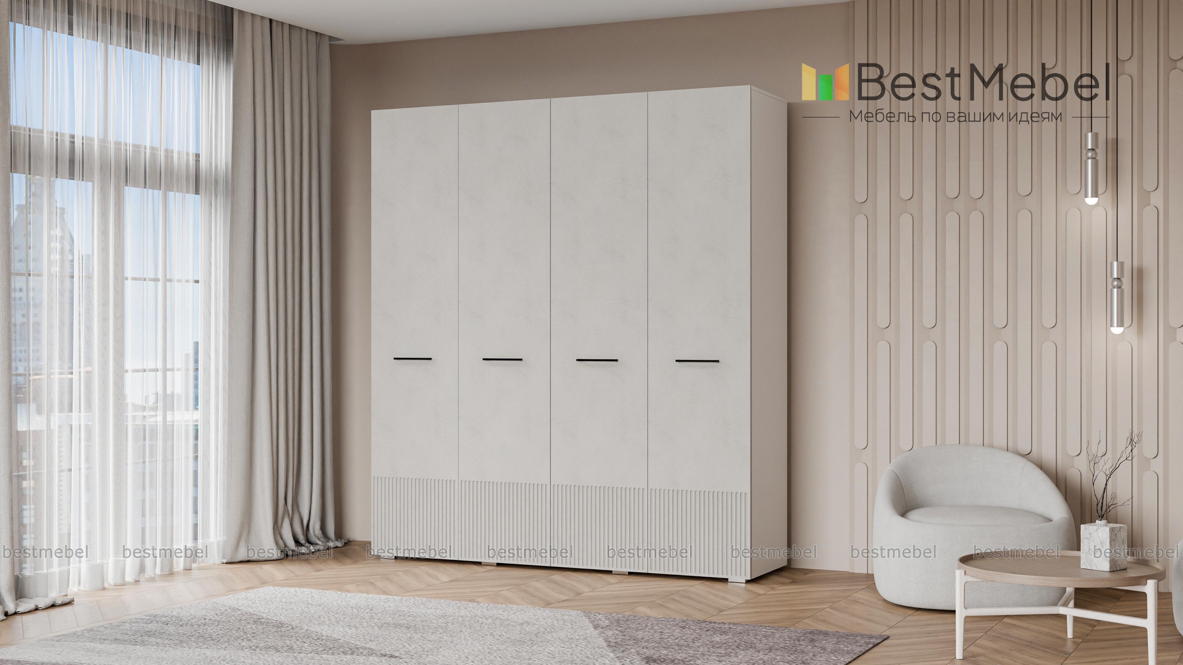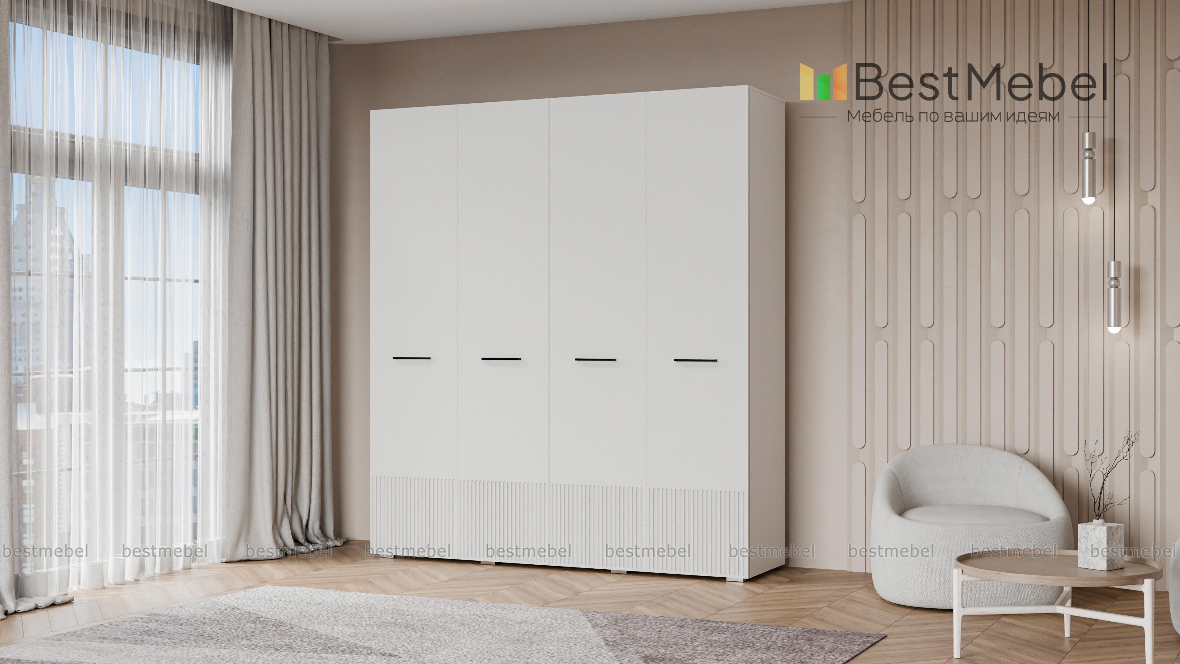 Шкаф распашной Декарт 4 BMS выполнен в традиционном стиле с поперечными контрастными ручками и фрезеровкой, что придает ему современный вид. Сочетание двух штанг разной длины и полок позволяет вам удобно организовать хранение одежды и коробок с обувью. Устойчивый к механическим повреждениям и влаге фасад из МДФ легко содержать в чистоте. Купить шкаф распашной Декарт 4 BMS с выбором размеров, цвета и наполнения вы всегда сможете в нашем интернет-магазине.