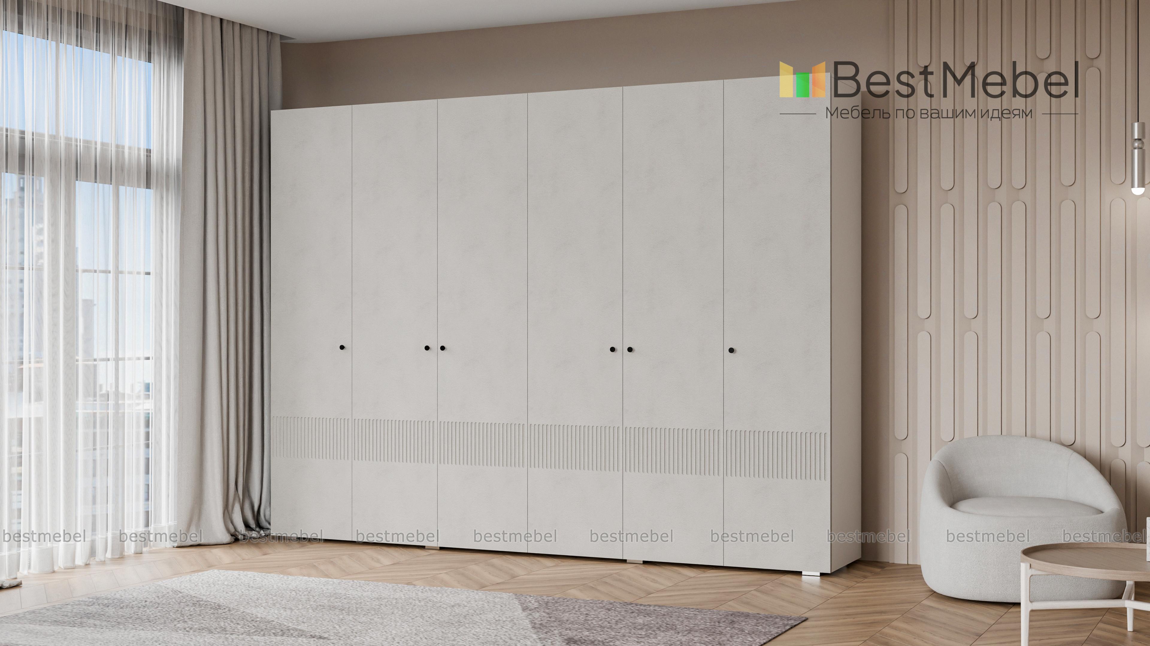 Шкаф распашной Джосс 6 BMS отличается простыми строгими линиями и актуальным декором. Шестидверный шкаф со сплошным цветным фасадом и фрезеровкой прекрасно подходит для спален, прихожих и детских. Два просторных отделения с платяными штангами и верхними полками дополнены однодверными секциями для хранения сложенной одежды и белья. Купить шкаф распашной Джосс 6 BMS вы сможете в нашем интернет-магазине, подобрав размеры, наполнение и подходящую цветовую гамму.