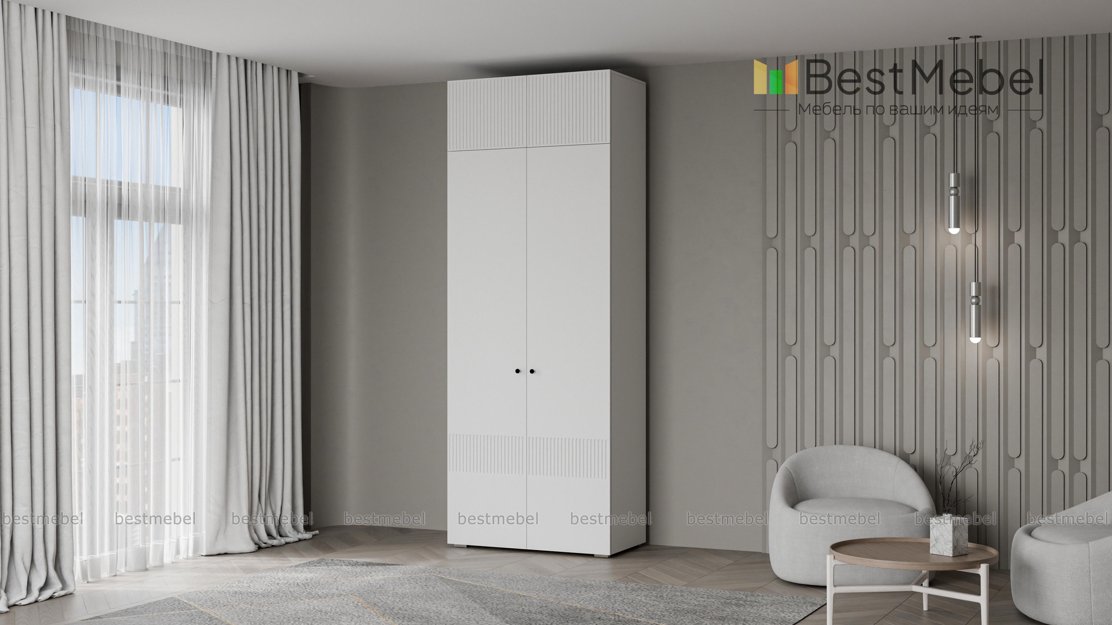 Шкаф распашной Джосс 8 BMS поможет эстетично организовать хранение, даже если пространство ограничено. За двумя дверцами, украшенными вертикальной фрезеровкой, — платяное отделение для одежды на вешалках и полка под коробки с аксессуарами. Дополнительный отсек сверху добавляет небольшому шкафу полезного объема, позволяя разместить сезонные или габаритные вещи. Купить шкаф распашной Джосс 8 BMS, изготовленный по индивидуальным размерам, вы сможете на сайте нашего интернет-магазина.