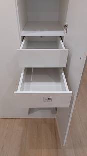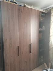 Шкаф распашной Остин Лайт 3 BMS (1860х2490х550), заказ 00000204766. Делали ремонт в коридоре и необходимо было заменить два шкафа, прихожую и дверцы на антресолях. Всё заказали здесь. Увидели на сайте этот шкаф и поняли - это то, что искали. Самостоятельно поменяли размеры, цвет фасадов (Тэффи L) и цвет самого шкафа (серый), кромку лицевых частей на 2 мм. ручки оставили эти (понравились), петли поменяли на Блюмовские с доводчиками. Внутри не меняли, был как надо. Середина - штанга и две полки (сверху и снизу), по бокам полки. Получился очень большой и вместительный шкаф. После оформления заказа на сайте, перезвонила менеджер (минут через 20), еще раз всё уточнила и перепроверила, помогла с точными размерами, чтобы шкаф точно встал в нишу. Всё изготовили быстро. Позвонили и согласовали день доставки. Доставка хорошая, оформляли с поднятием в квартиру. Комплектация полная, всё целое. Выдали документы с гарантией и телефоном компании по сборке. Позвонили туда и через час с нами связался сборщик, согласовали уже с ним дату и время. Отличный парень по сборке мебели. Собрал нам сразу два шкафа и прихожую за 4 часа. Спасибо, что появился такой интернет-магазин! Цена шкафа намного ниже, чем заказывать в компаниях по изготовлению мебели на заказ (узнавали в 5 компаниях) и сроки изготовления в несколько раз быстрее. Спасибо, что появился такой интернет-магазин!