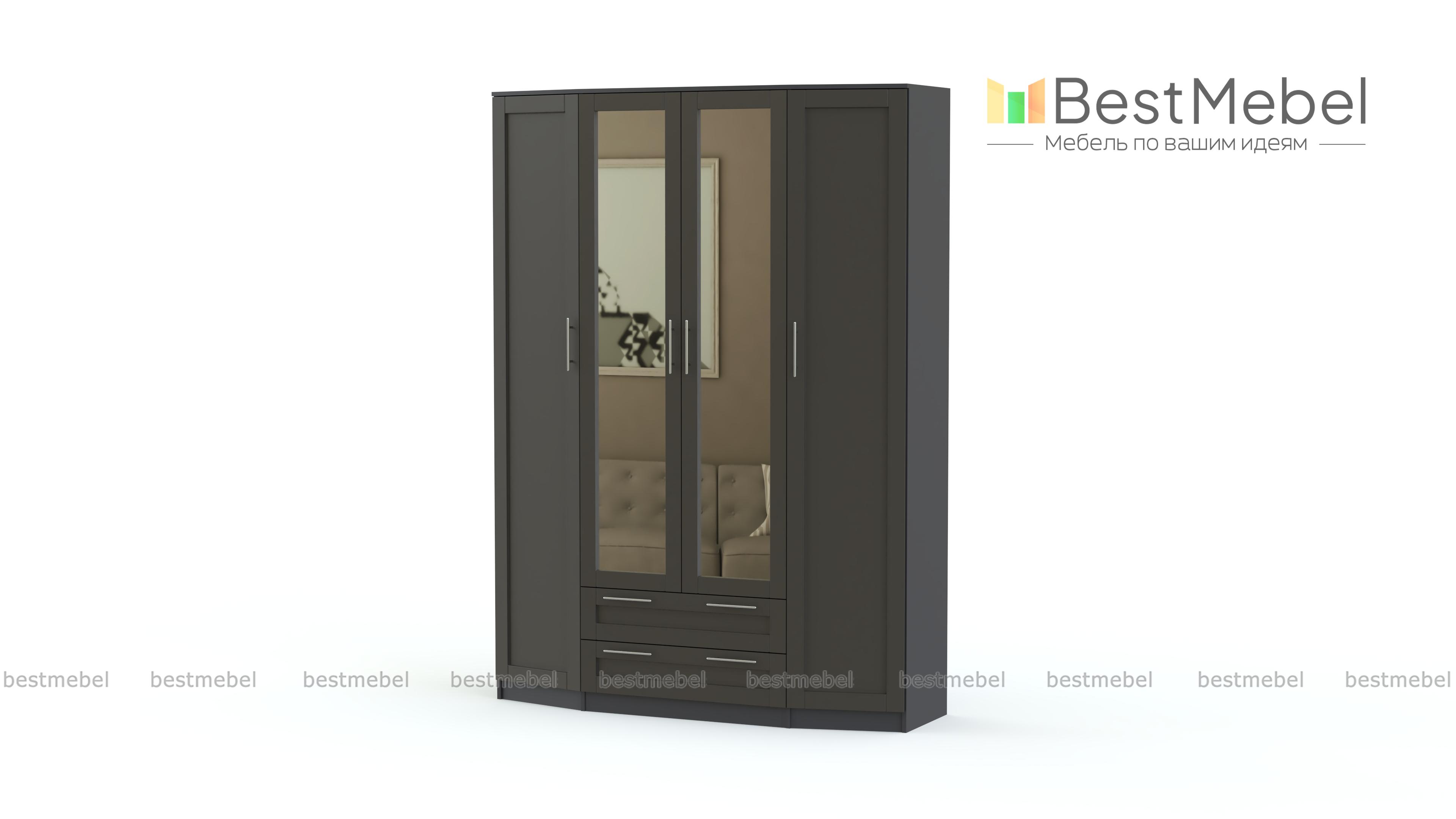 Шкаф распашной Скандинавия BMS выполнен в классическом стиле, а особенностью дизайна станет чуть выступающий трапециевидный фасад. Помимо распашных отделений с бельевыми полками и штангой четырехдверный шкаф оборудован двумя вместительными выдвижными ящиками. Фрезерованные створки в универсальных белых тонах скомбинированы с полностью зеркальными, удобными для примерки и визуально облегчающими интерьер. Купить шкаф распашной Скандинавия BMS для меблировки спальни или прихожей вы сможете в нашем интернет-магазине.