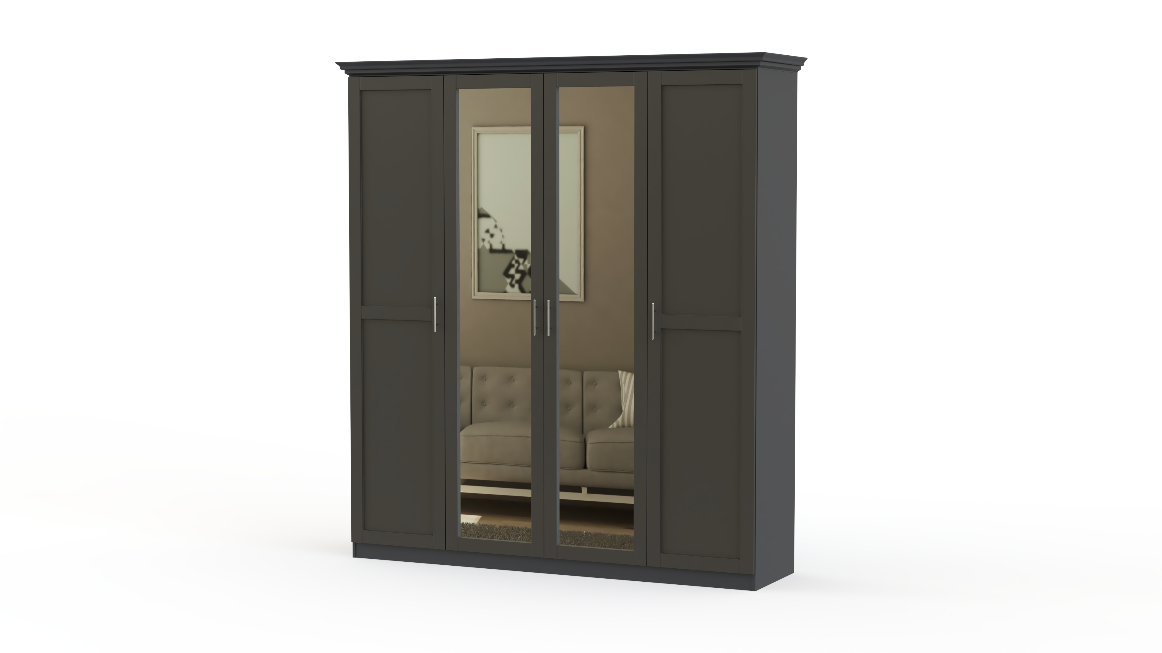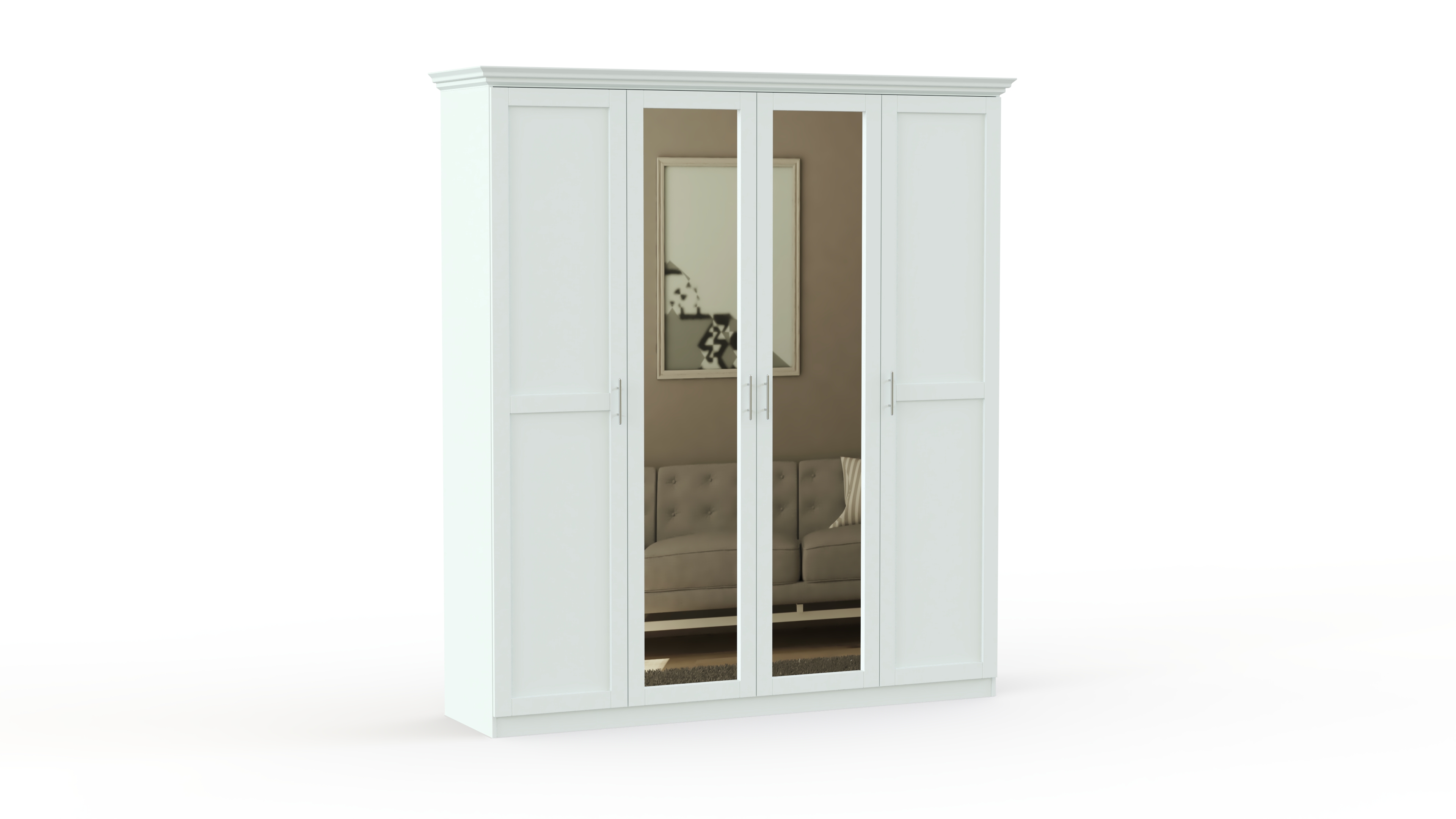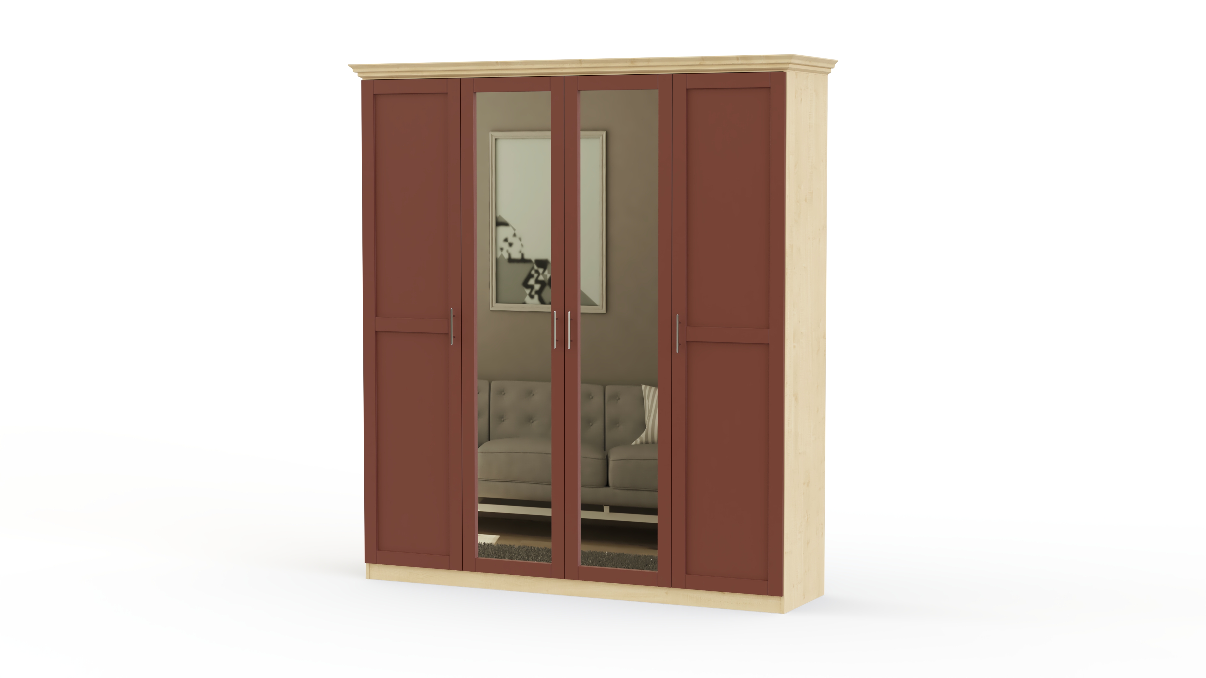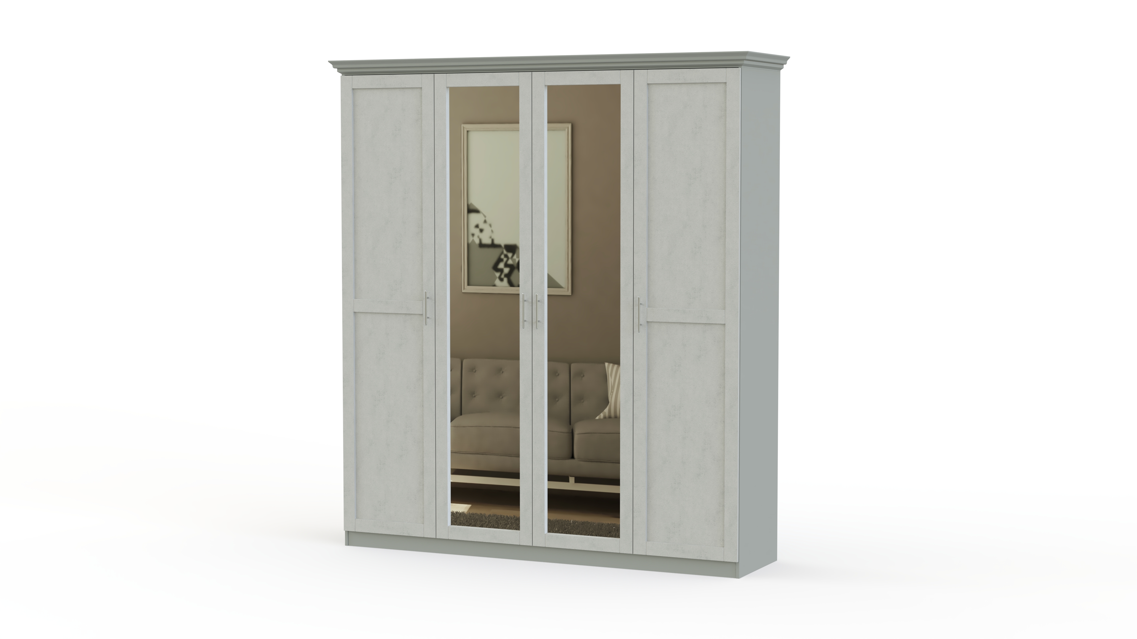 Спальня СП-4565 BMS – качественный комплект, доступный по привлекательной цене. Все детали выполнены из современных сертифицированных материалов — ЛДСП и МДФ. Все предметы набора можно выбрать самостоятельно на сайте нашего магазина, чтобы создать уникальную обстановку. В базовой версии в комплект вошли самые важные элементы, без которых невозможно представить современную спальную комнату. Просторная кровать с невероятно красивым изголовьем изящной формы с обивкой, украшенной каретной стяжкой, имеет прикроватные тумбы. Большой четырех-створчатый шкаф со встроенным зеркалом вместит весь гардероб. Нарядно выглядит традиционный комод, над которым размещено настенное зеркало в раме оригинальной формы. На сайте нашего магазина вы можете ознакомиться с широкой палитрой расцветок, и выбрать ее на свое усмотрение. Купить спальню СП-4565 BMS предлагаем по крайне привлекательной цене прямо сейчас. Доставку сделаем быстро и бесплатно.