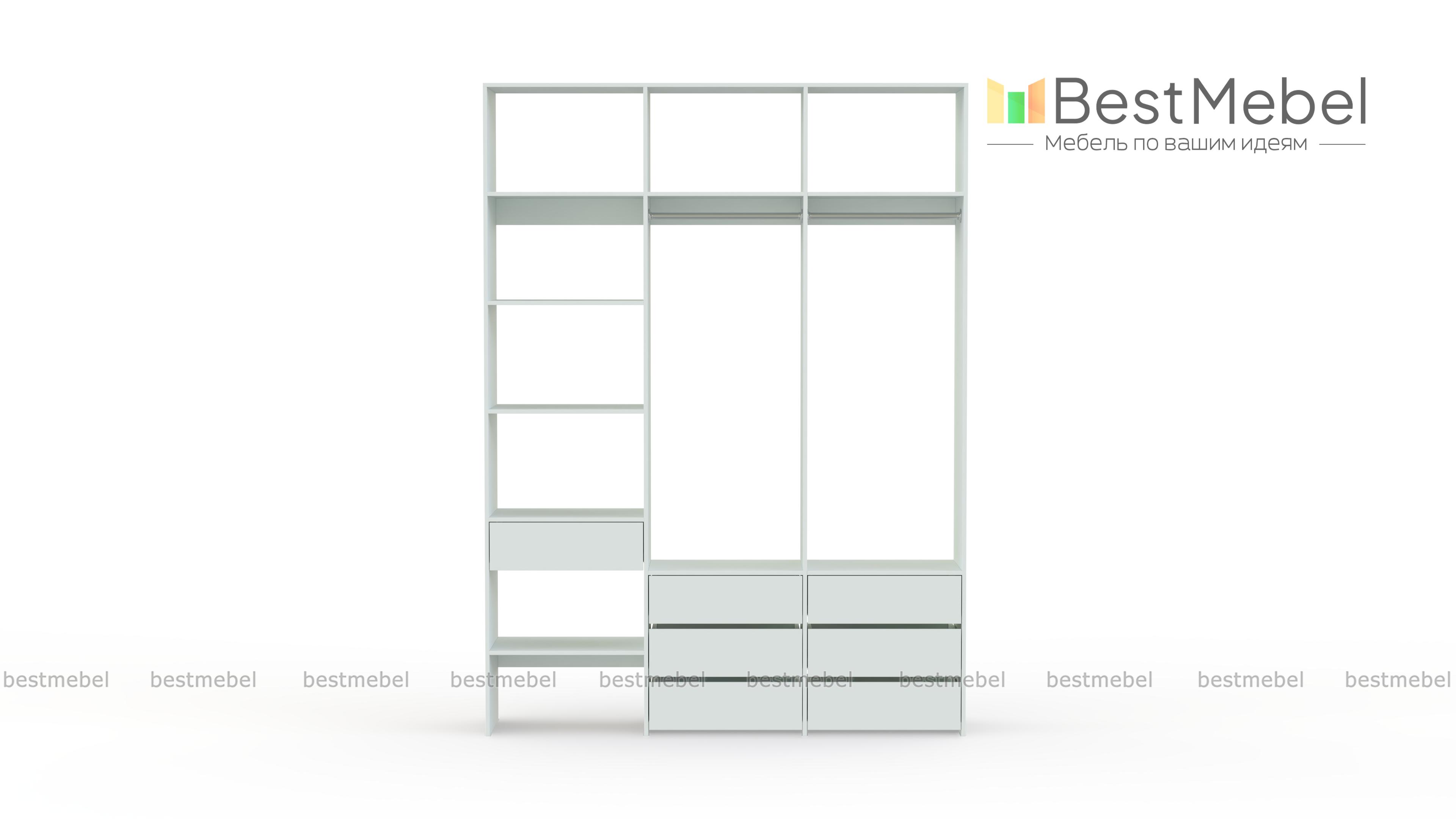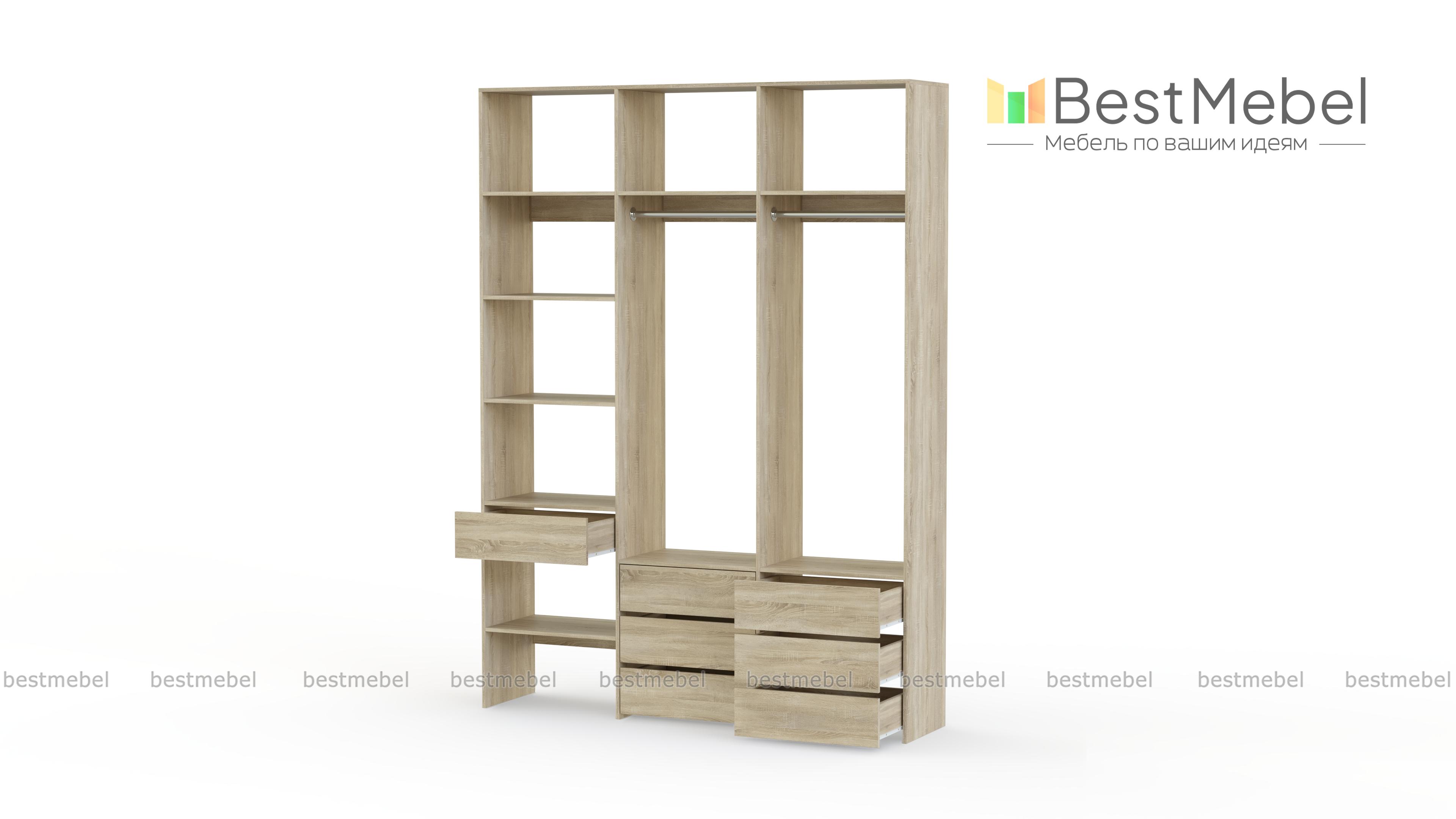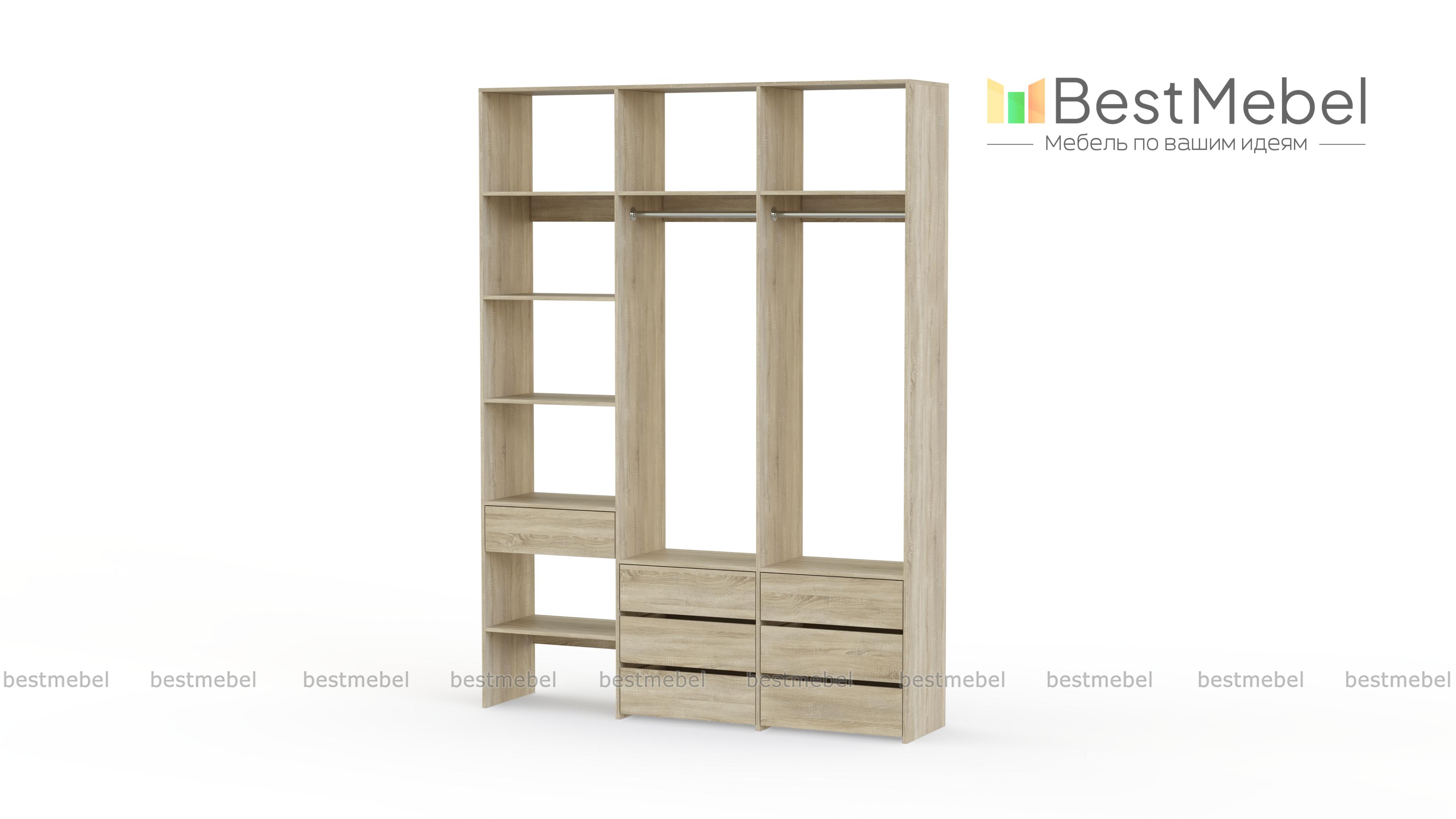 Стеллаж для одежды Мирта 52 BMS оборудован не только двумя штангами, но и расположенными на разных уровнях выдвижными ящиками и полками. Конструкция позволяет вам бережно разместить вещи на вешалках и трикотаж, коробки с обувью и корзины со всевозможными мелочами. Стеллаж выполнен из прочной ЛДСП, что обеспечивает ему долгий срок службы и эстетичный внешний вид. Купить стеллаж для одежды Мирта 52 BMS вы сможете в нашем интернет-магазине, подобрав размеры и цвет по каталогу.