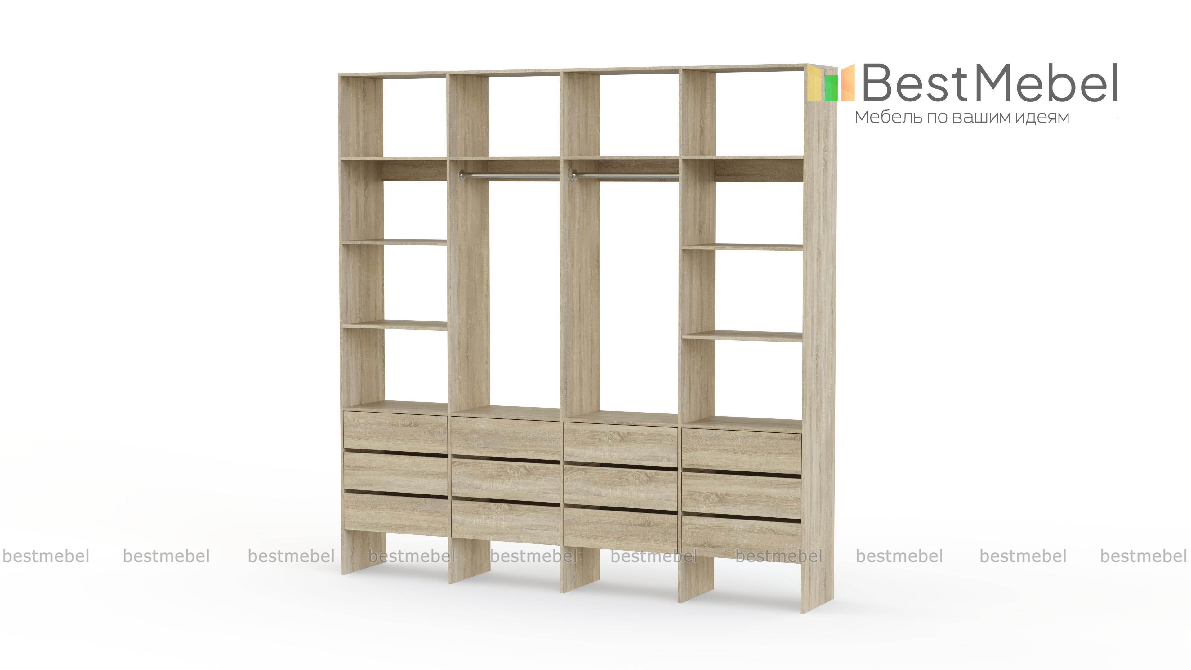 Стеллаж для одежды Мирта 64 BMS — современное решение для вашей прихожей и гардеробной. Конструкция из износостойкой ламинированной ДСП базового оттенка надежна, эстетична и доступна по цене. Практичная комбинация двух штанг, верхних и боковых полок, а также большого количества выдвижных ящиков делает хранение гардероба максимально удобным. Купить стеллаж для одежды Мирта 64 BMS вы сможете на сайте нашего интернет-магазина, подобрав по своему вкусу цвет и размеры.