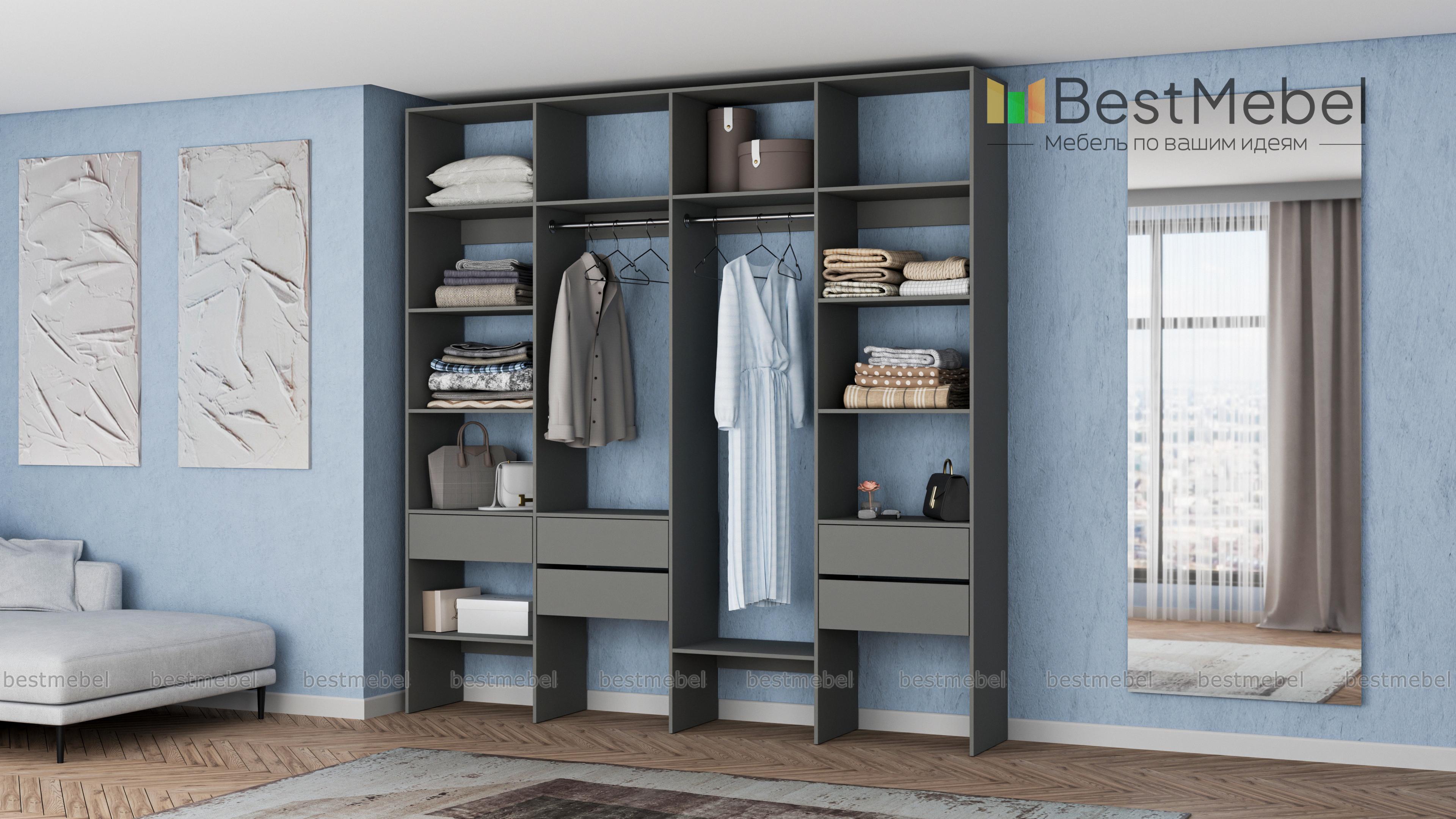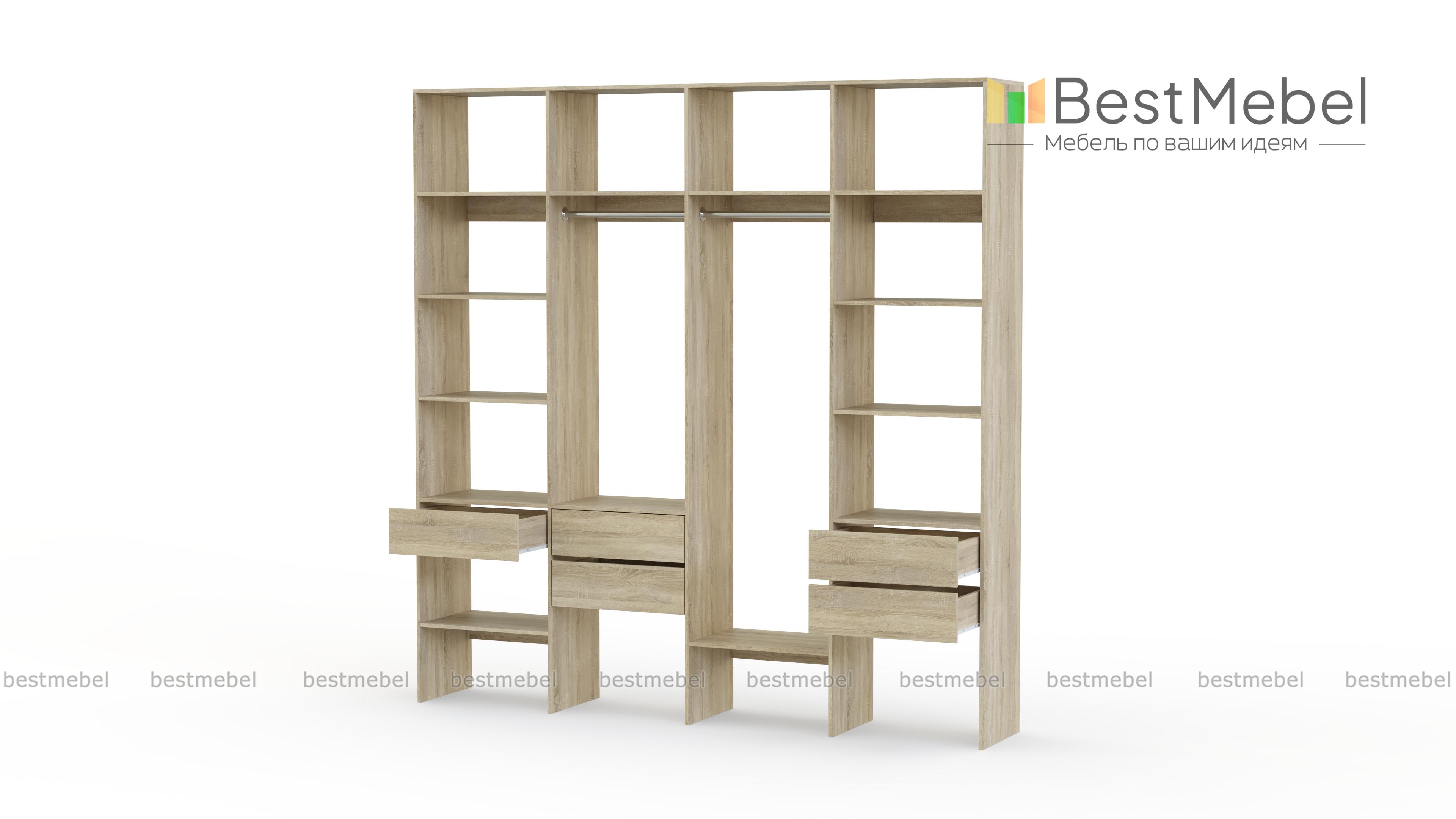 Стеллаж для одежды Мирта 68 BMS поможет вам рационально использовать пространство. Одежда и обувь, аксессуары и прочие необходимые вещи будут всегда в удобном доступе благодаря комбинации двух штанг, расположенных на разной высоте полок и пяти выдвижных ящиков. Прочная ламинированная плита обеспечивает конструкции надежность и немаловажную для гардеробной простоту ухода. Купить стеллаж для одежды Мирта 68 BMS приглашаем в наш интернет-магазин с выбором цвета и габаритов.