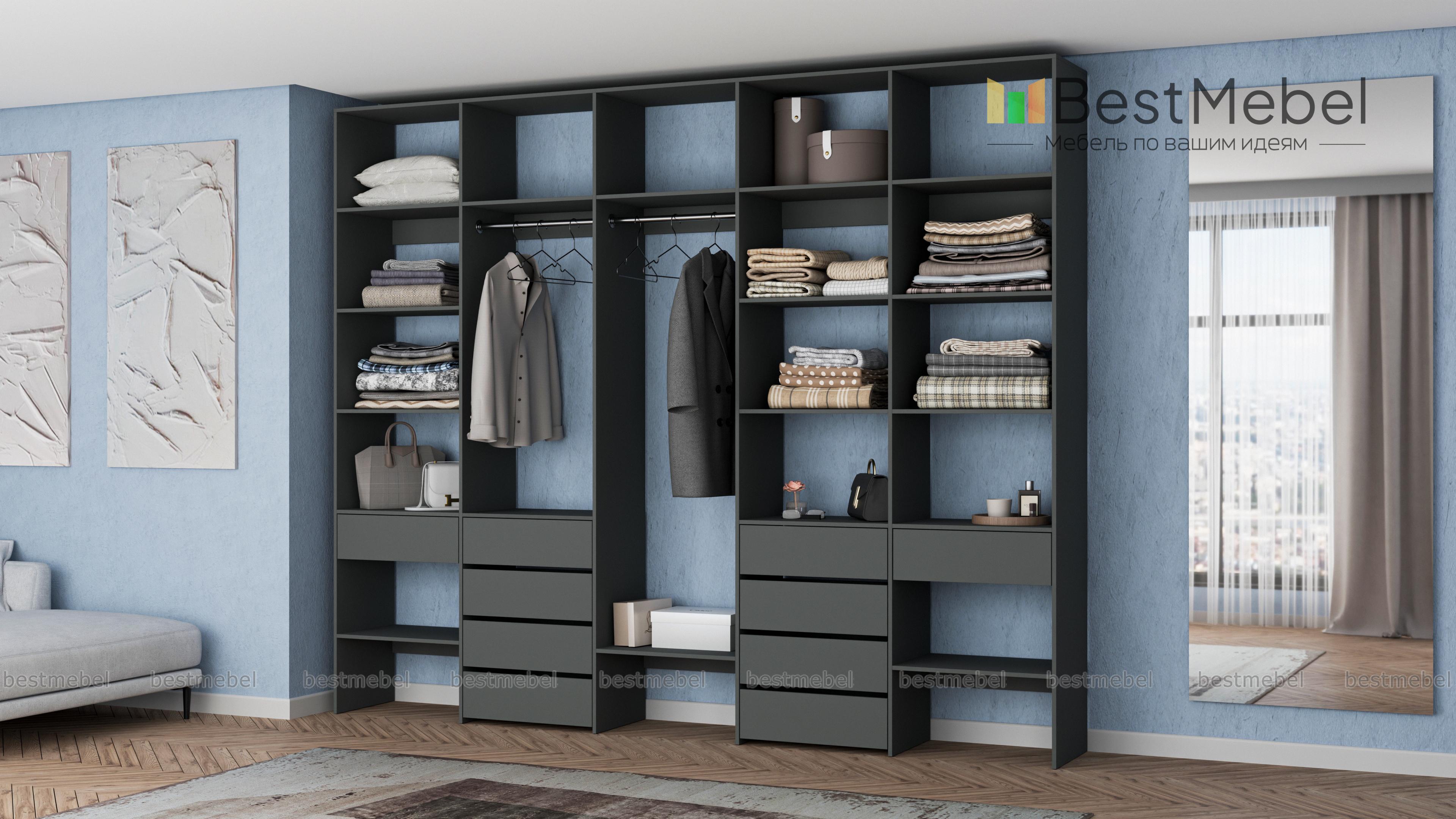 Стеллаж для одежды Мирта 71 BMS вместителен и подходит для просторных помещений. Использование ламинированной плиты делает модель недорогой, но при этом надежной и не требующей сложного ухода. Продуманная конфигурация стеллажа предусматривает платяные секции под одежду разной длины, большое количество полок и выдвижные ящики, заменяющие отдельно стоящие комоды. Купить стеллаж для одежды Мирта 71 BMS в нужном размере и гармонирующем с интерьером оттенке вы сможете в нашем интернет-магазине.