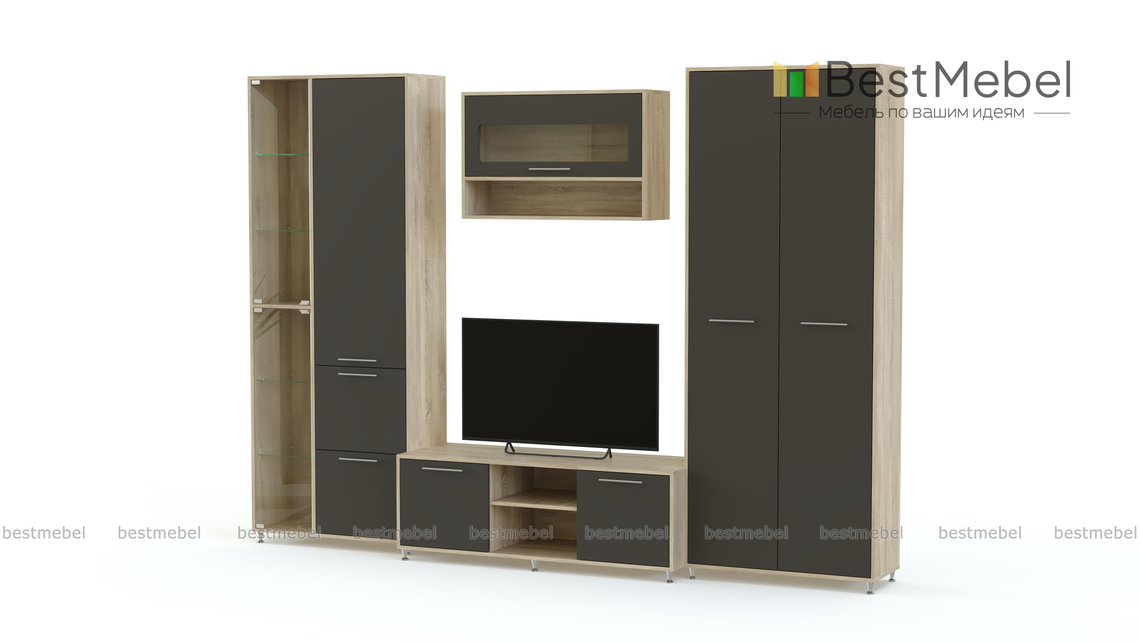 Стенка Адажио BMS – нестандартное решение для организации пространства в современной гостиной. Модульная композиция привлекает внимание ярким, контрастным цветовым решением и продуманной комбинацией элементов. В комплекте двухдверный платяной шкаф, комбинированный шкаф с выдвижными ящиками, низкая тумба под ТВ и навесной шкафчик. Матовые фасады устойчивы к выгоранию и механическим повреждениям, надолго сохраняя эстетичный вид. Купить стенку Адажио BMS по отличной цене вы сможете в нашем интернет-магазине.
