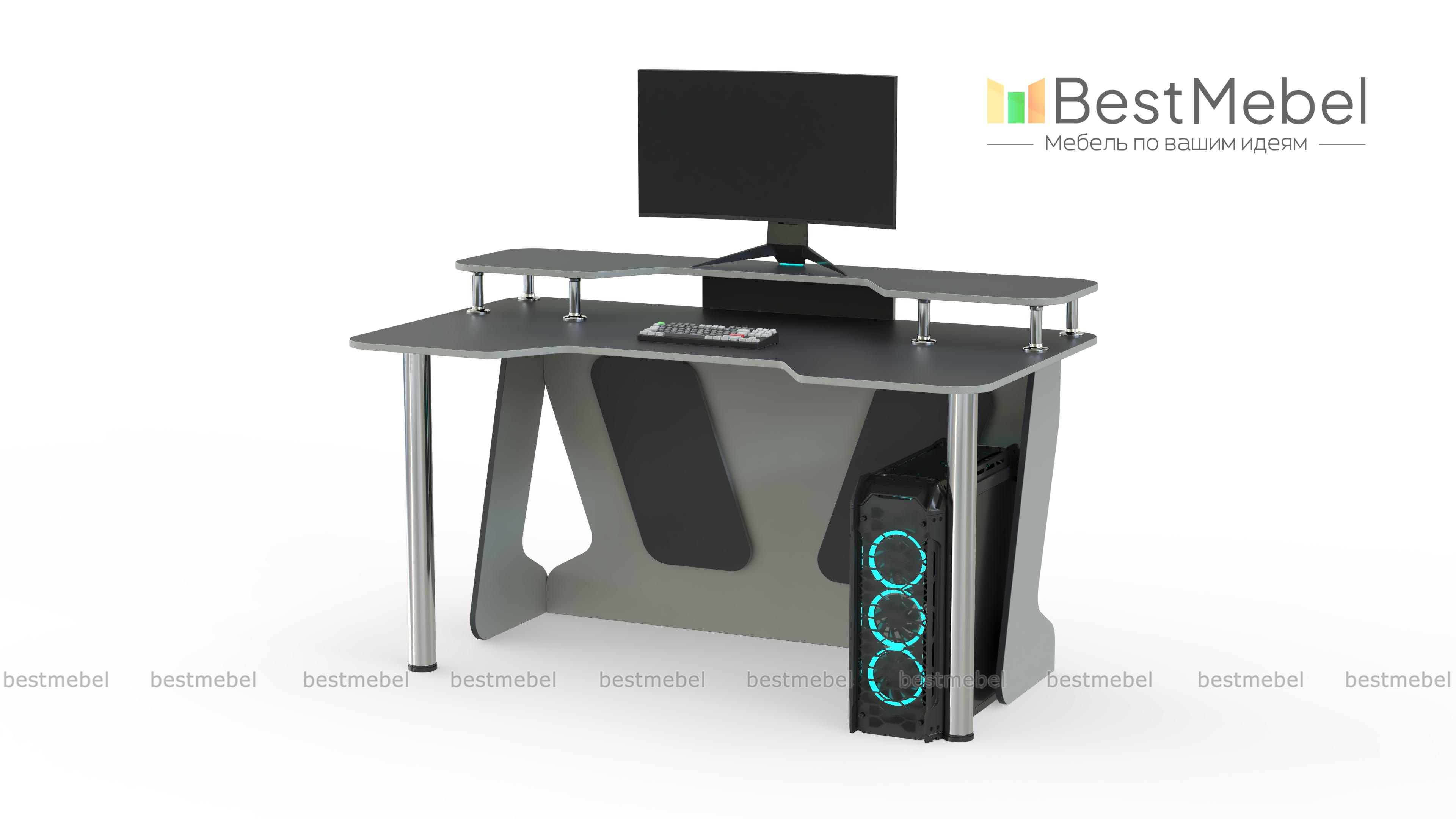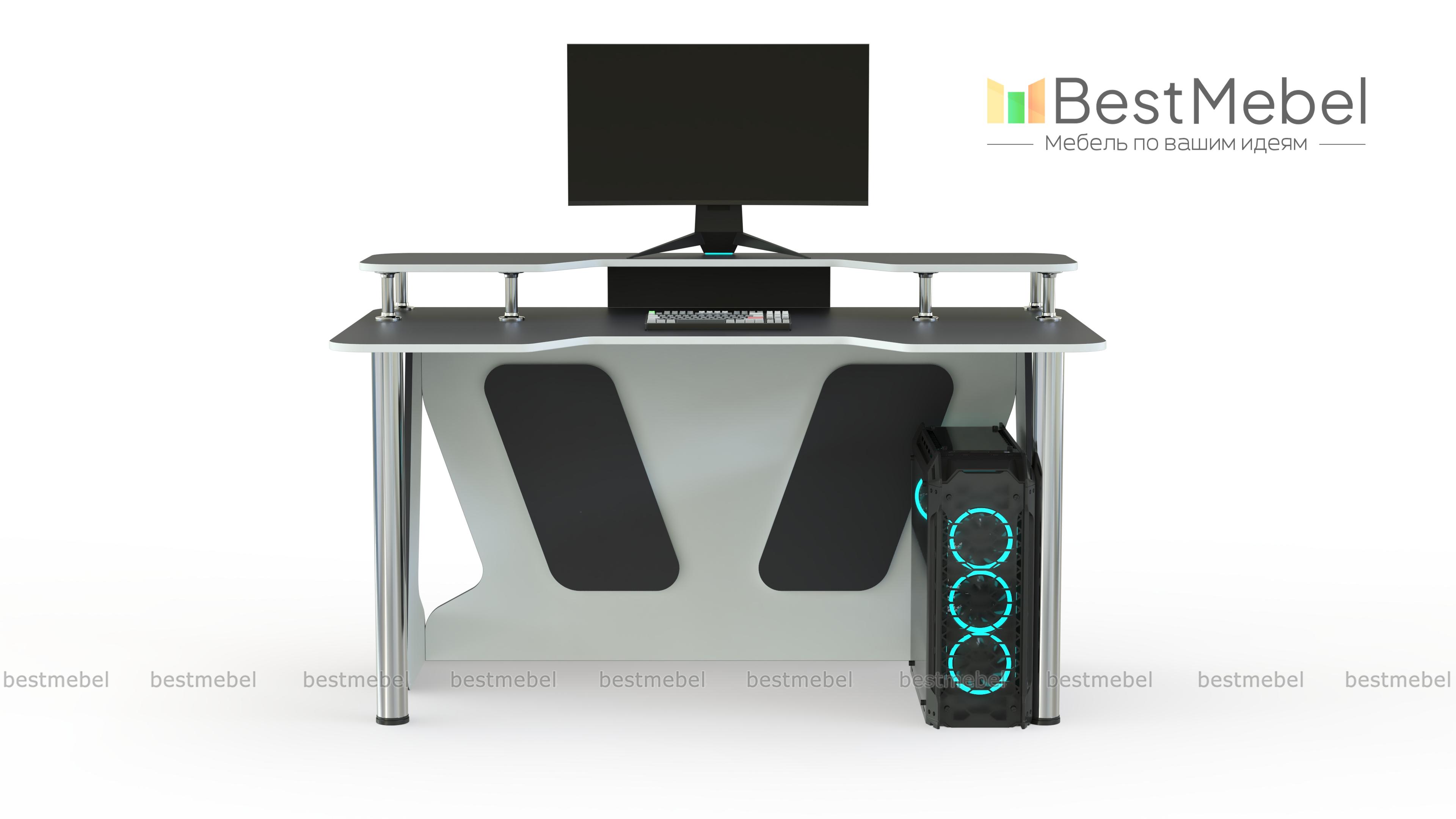 Геймерский стол Финн-4 BMS отличается креативным дизайном и интересным цветовым решением в сером и белом оттенке. Просторная столешница со скругленными углами и эргономичным вырезом дополнена надстройкой, которая позволит разместить на удобной высоте монитор и периферийные устройства. Устойчивость и легкость модели придают регулируемые хромированные ножки и опоры из ЛДСП с декоративными вырезами. Купить геймерский стол Финн-4 BMS приглашаем к нам в интернет-магазин.