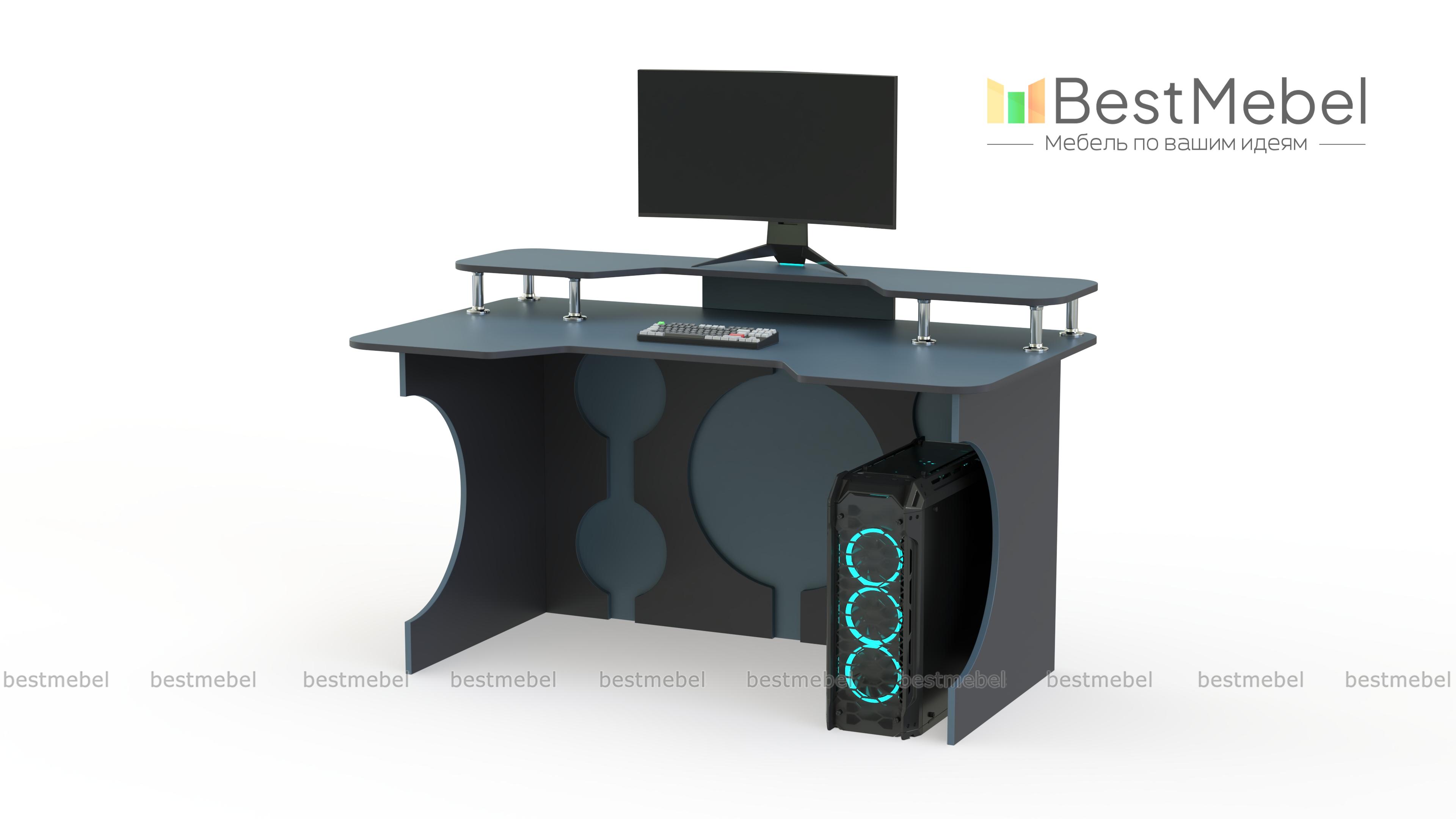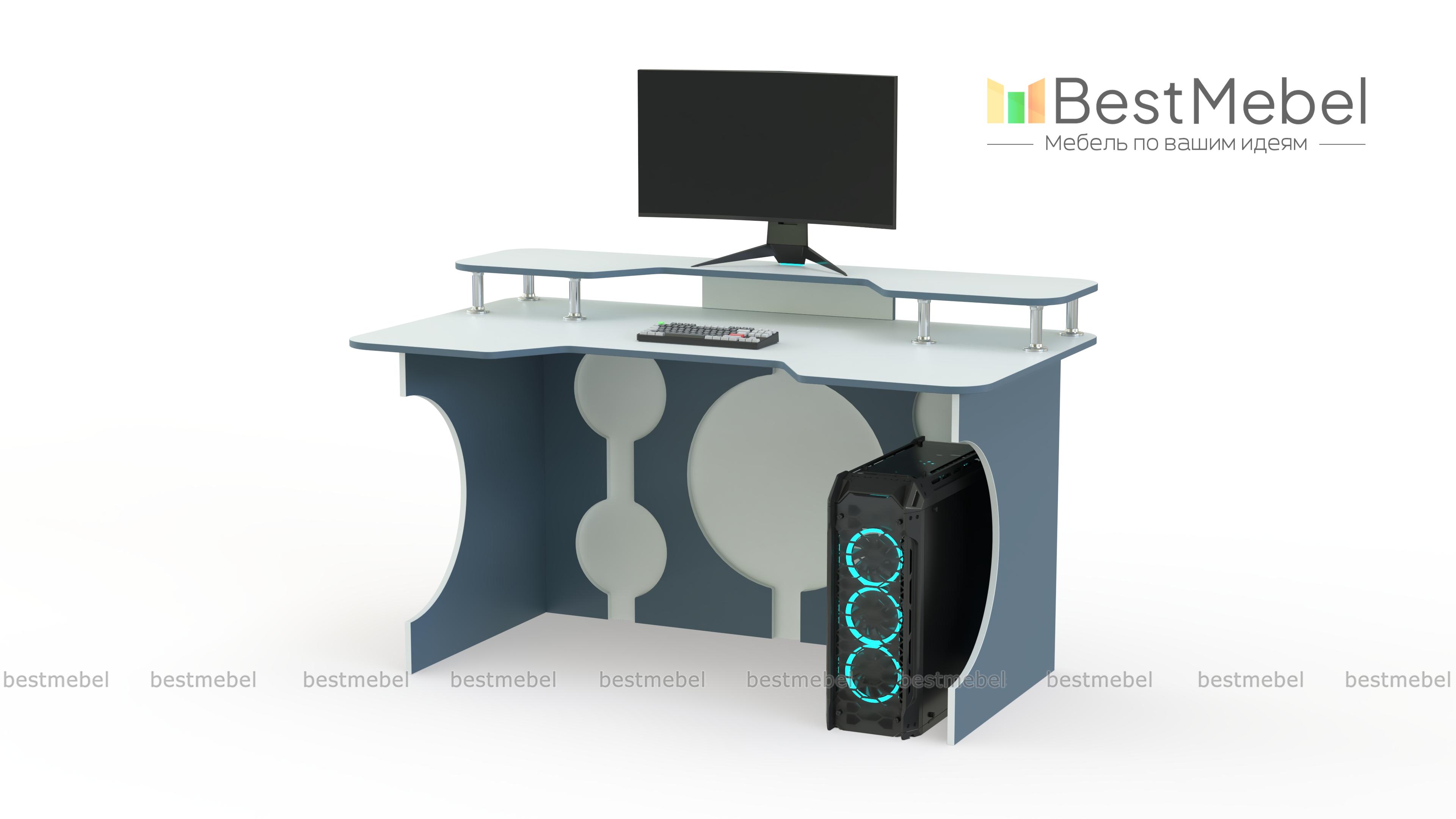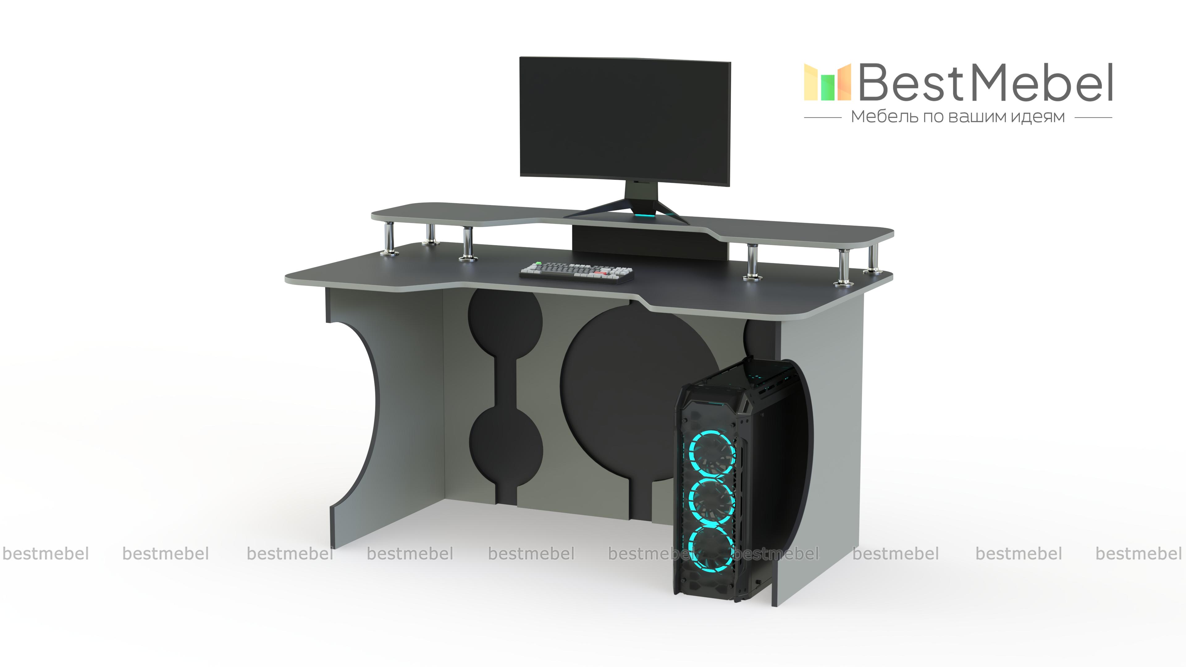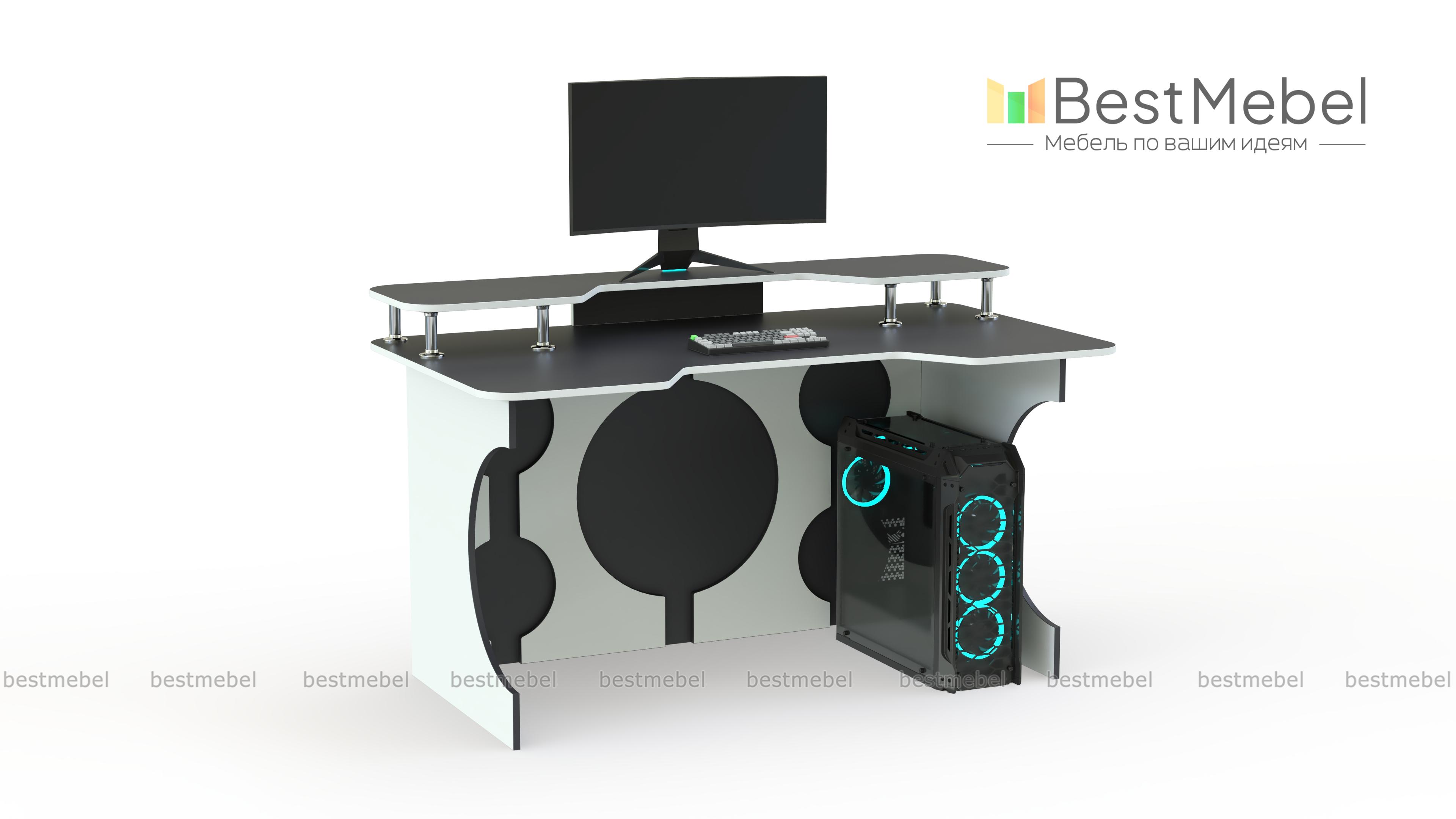 Игровой стол Европа 11 BMS сочетает в себе креативность дизайна с эргономичностью. Стильная модель в черно-белой гамме декорирована круглыми вырезами и не смотрится громоздко. Необходимую поддержку локтевой зоны обеспечит столешница с трапециевидным вырезом переднего края, а освободить рабочую поверхность поможет надстройка для монитора, колонок и прочих периферийных устройств. Купить игровой стол Европа 11 BMS приглашаем в наш интернет-магазин с возможностью изменения размеров.