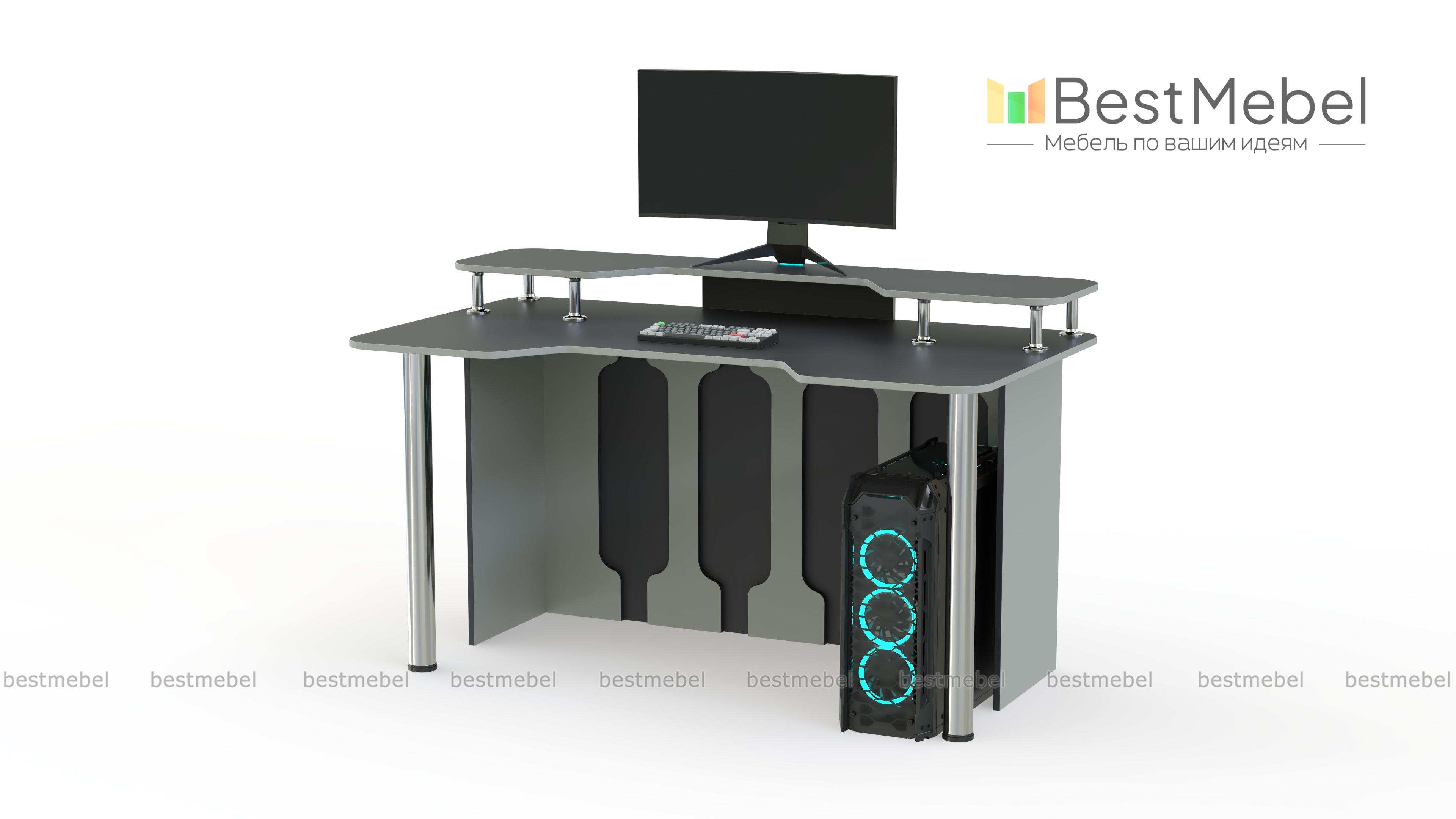 Игровой стол Стар-5 BMS позволит проводить за компьютером долгое время благодаря удобной форме столешницы. Дополненная надстройкой, она поможет разместить на удобной высоте монитор и периферийные устройства, а правильное положение тела обеспечит эргономичная выемка. Яркая модель в сине-белой гамме оборудована устойчивыми хромированными опорами и задней стенкой с декоративными вырезами. Купить игровой стол Стар-5 BMS вы сможете на сайте нашего интернет-магазина.