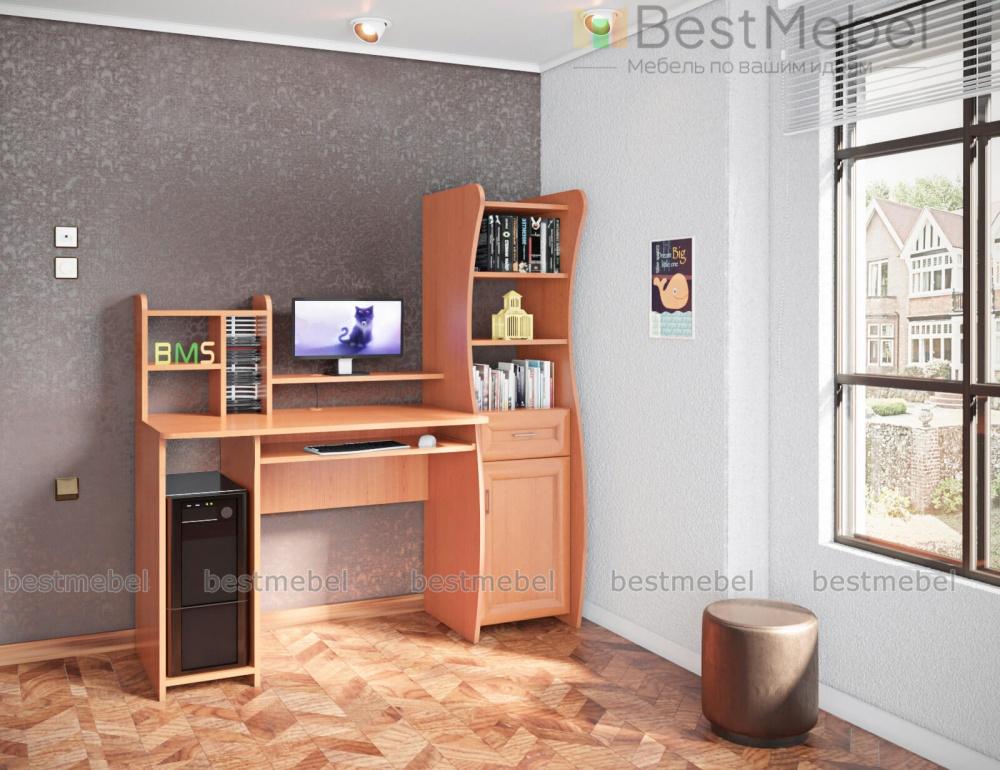 Эта модель привлекает особое внимание необычной формой боковой тумбы. Ее изогнутая форма придает мебели особый стиль и современный вид. Компьютерный стол Магнат имеет специальное место под системный блок, полку для монитора и выдвижную полочку для клавиатуры. Сбоку находится небольшая полочка мелочей и колонок, а просторная боковая тумба даст возможность разместить все необходимые бумаги, книги, канцелярские принадлежности и т.п. Заказать такую мебель Вы можете для дома или офиса.
