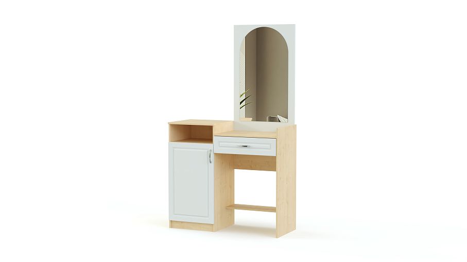 Стол туалетный Ланистер 21 BMS станет практичным дополнением современного спального гарнитура. Модель отличается компактными размерами и оригинальным дизайном. Выполненный в контрастных тонах и украшенный по фасаду фрезеровкой, столик оборудован столешницей с выдвижным ящиком для мелочей, высокой тумбой с нишей и распашным отделением и панелью со скругленным зеркалом. Купить стол туалетный Ланистер 21 BMS и разместить все необходимые уходовые средства и предметы декора вам поможет наш интернет-магазин.