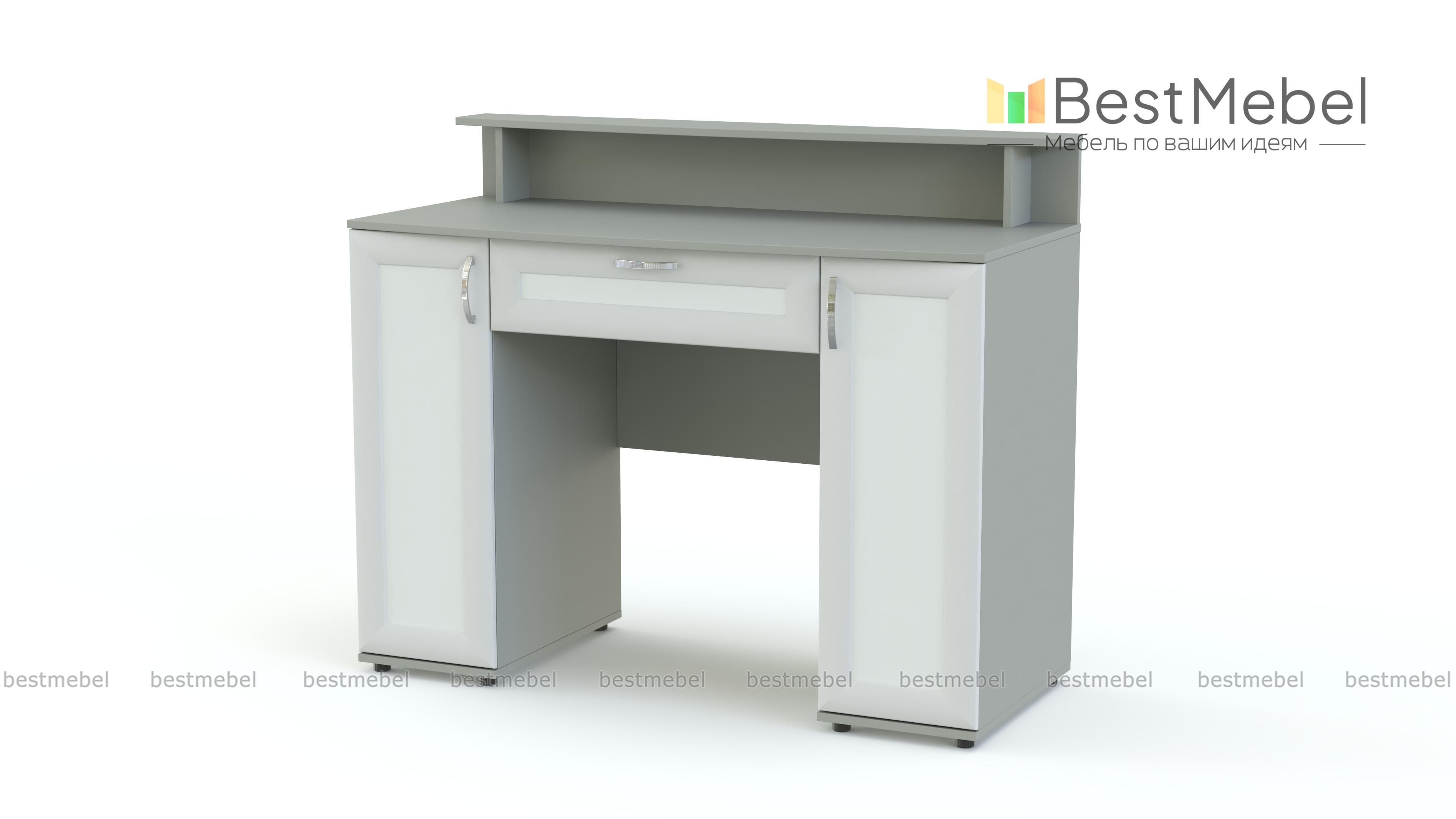 Туалетный стол Магнус 5 BMS гармонично дополнит интерьер современной спальни и поможет разместить под рукой все необходимые уходовые средства. Модель оборудована двумя распашными тумбами, выдвижным ящиком для мелочей, а столешницу эргономичной формы дополняет надстройка с полочкой, к которой крепится зеркало, и нишей. Выполненные в древесных тонах рамочные фасады декорированы вставками контрастного цвета. Купить туалетный стол Магнус 5 BMS приглашаем в наш интернет-магазин по доступной цене.