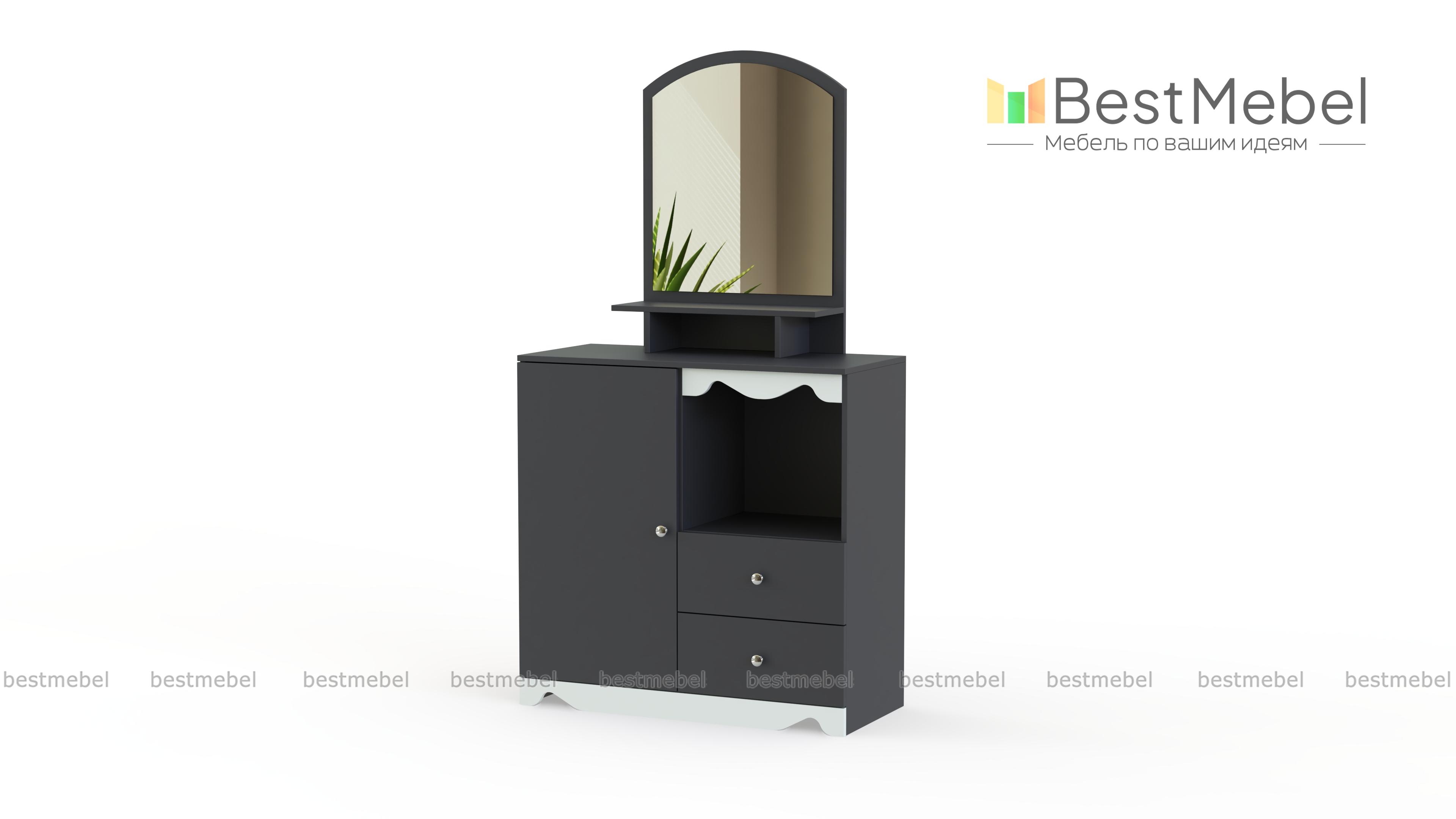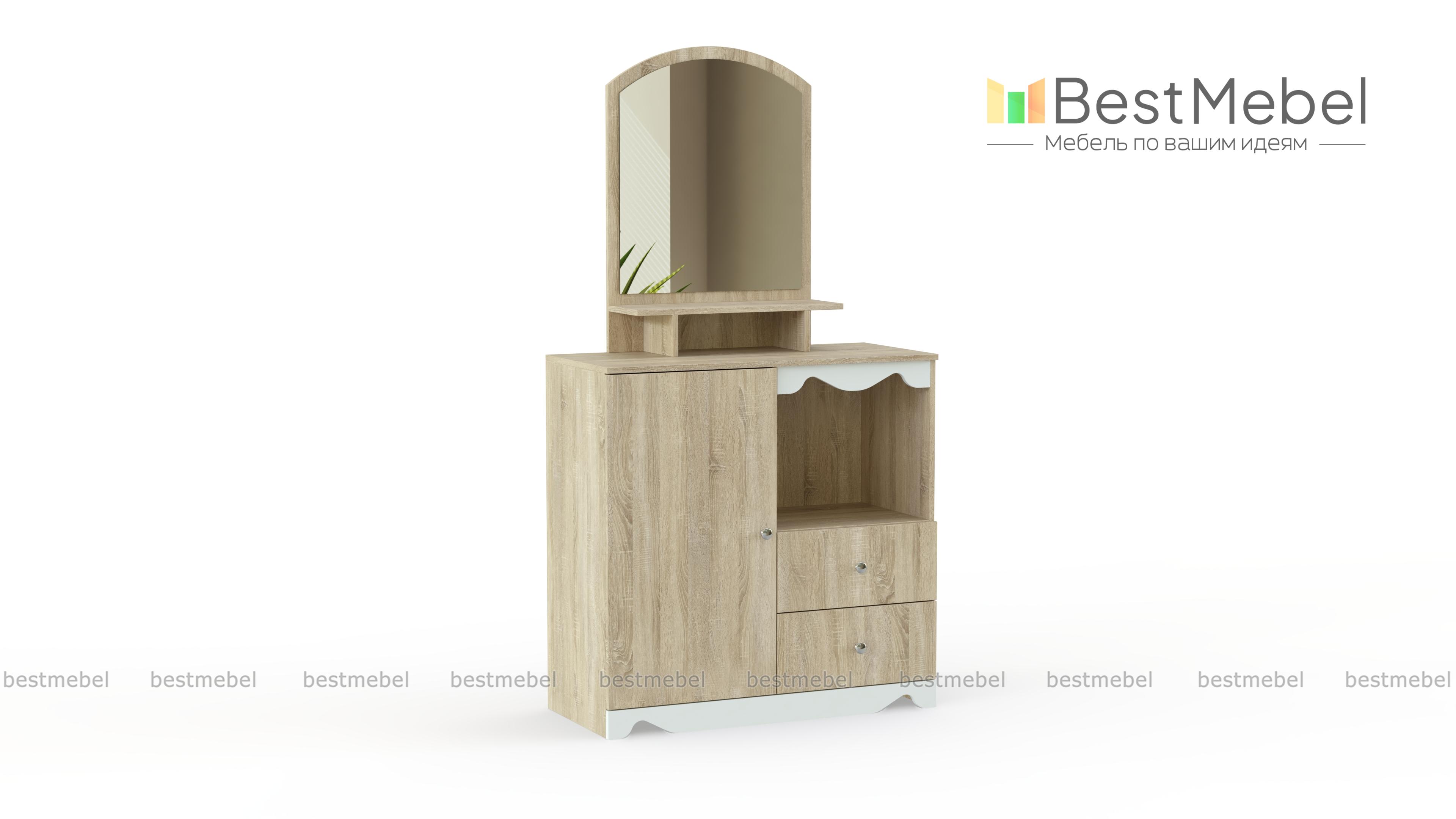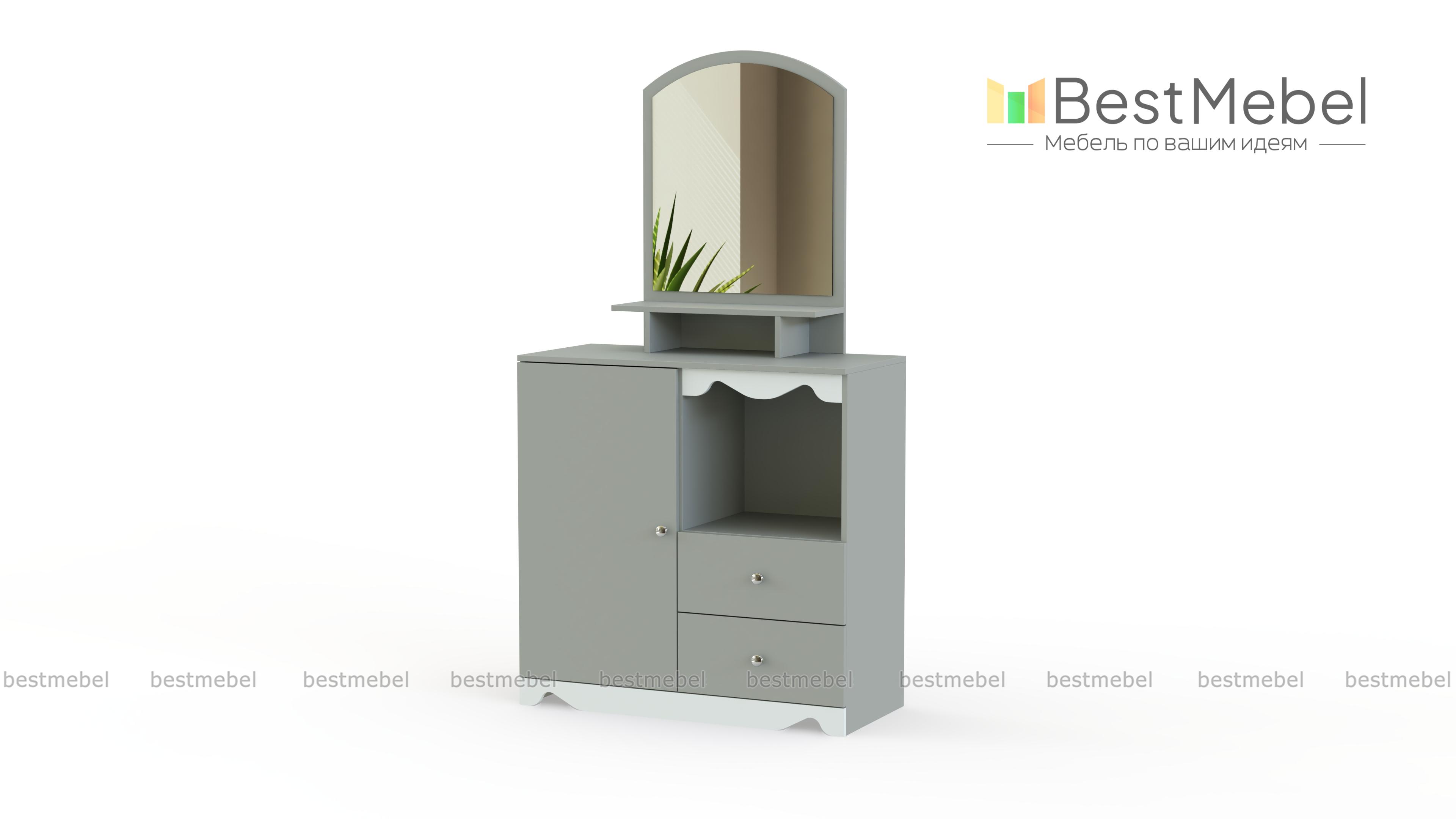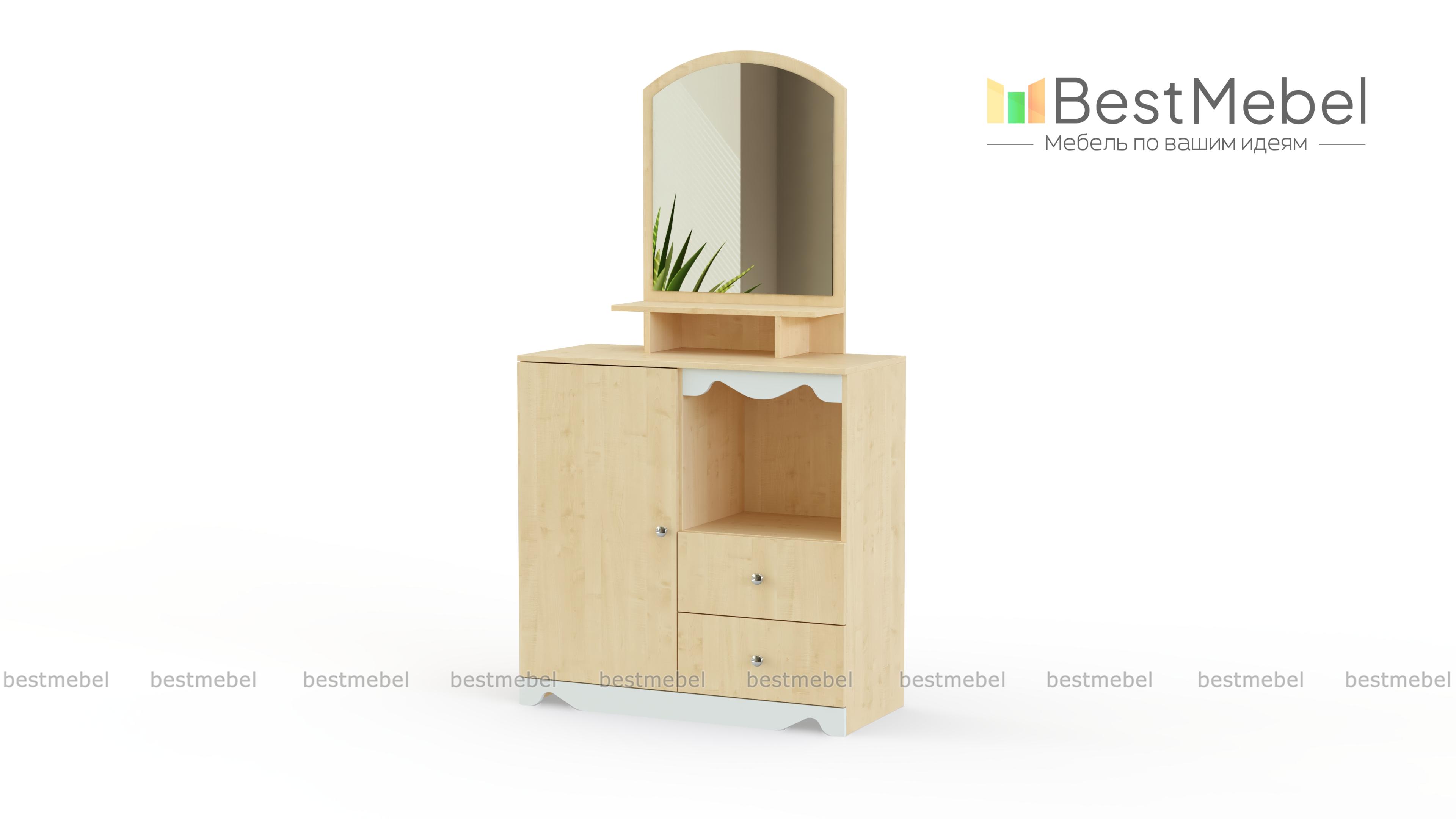 Очаровательное трюмо для детской комнаты. Маленькую хозяйку непременно порадует симпатичное зеркало и наличие большого количества разнообразных полочек и ящичков, в которых будет удобно хранить косметику, украшения, аксессуары для волос и множество других сокровищ. Нежно – белый декор туалетного столика Пинк-6 BMS тоже не оставит настоящую барышню равнодушной. Выполняется модель в светлых натуральных тонах из прочных безопасных материалов и отлично дополнит интерьер детской.