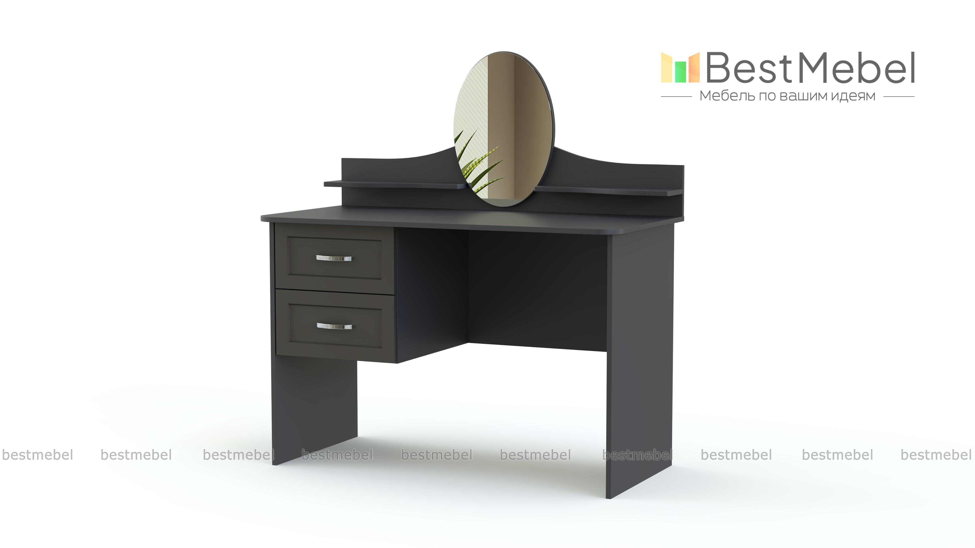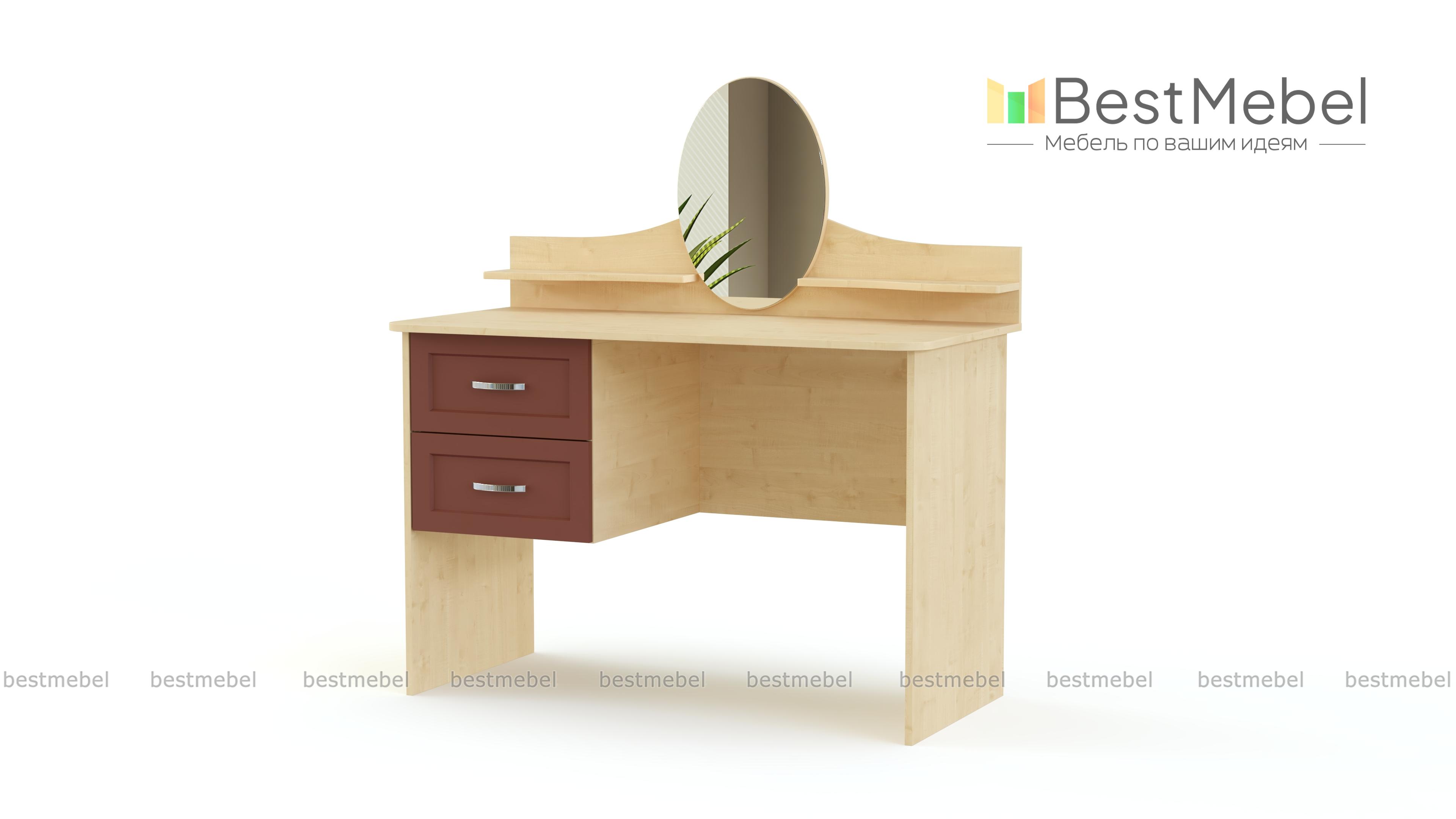 Элегантный классический столик для уютной спальни в стиле прованс. Модель обладает характерными для мебели этого типа плавными изгибами, богатым декором фасадов и выполняется в светлых тонах. Для украшений и парфюмерных флаконов по бокам небольшого овального зеркала располагаются две изящные полочки, углы широкой столешницы безопасно скруглены. Хранить под рукой необходимые вещи будет просто с выдвижными вместительными ящиками. Туалетный столик Шери BMS непременно порадует вас и доступной ценой.