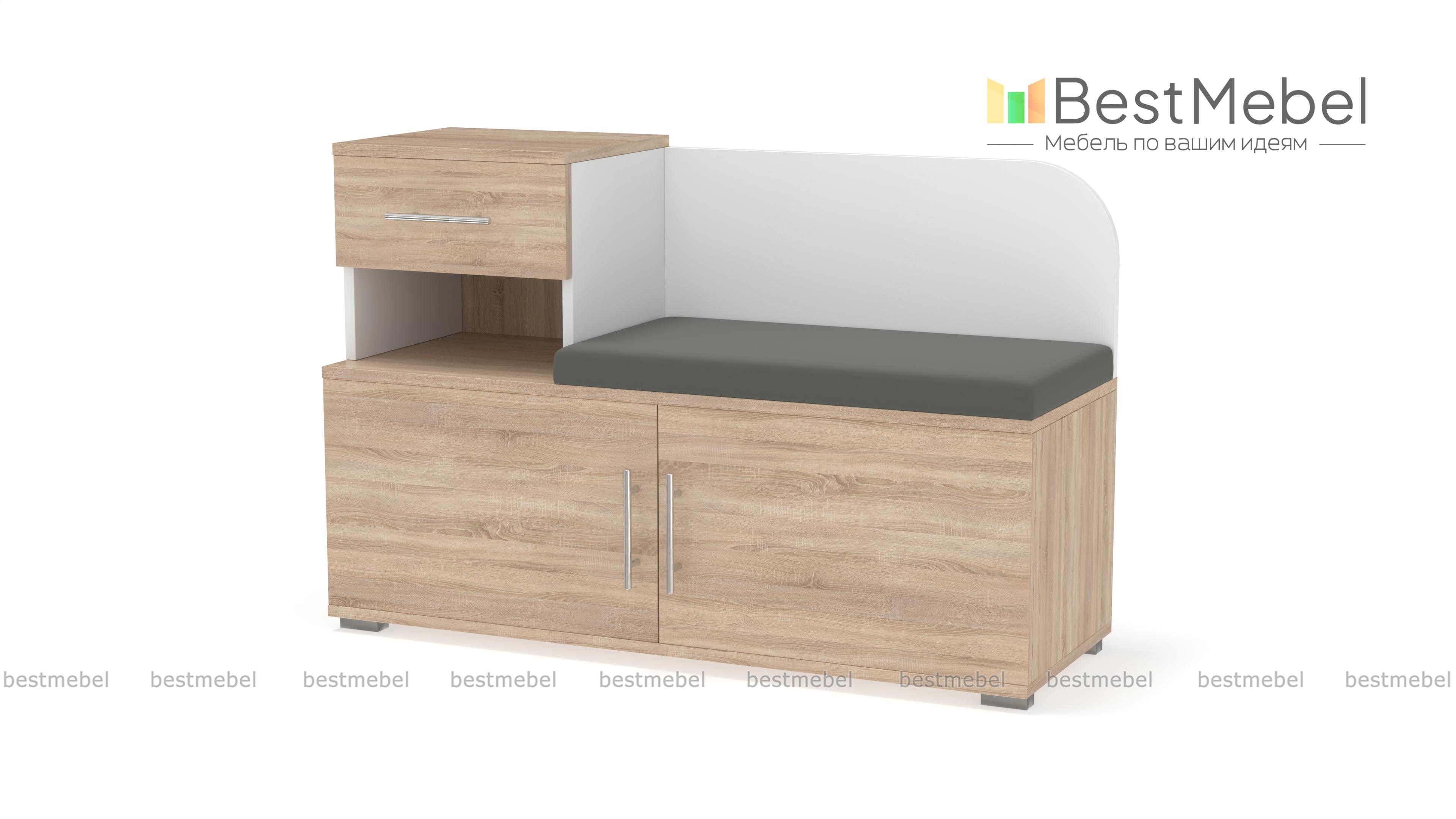 Тумба Аврора BMS – практичное дополнение меблировки прихожей. Компактная и функциональная, тумба оборудована просторным распашным отделением с полками, нишей, выдвижным ящиком и удобна для хранения сезонной обуви, средств по уходу и аксессуаров. Комфортным процесс надевания обуви сделает сиденье в мягкой тканевой обивке и высокая скругленная спинка. Износостойкие поверхности надолго сохранят эстетичный вид и не требовательны в уходе. Купить тумбу Аврора BMS приглашаем недорого в наш интернет-магазин.