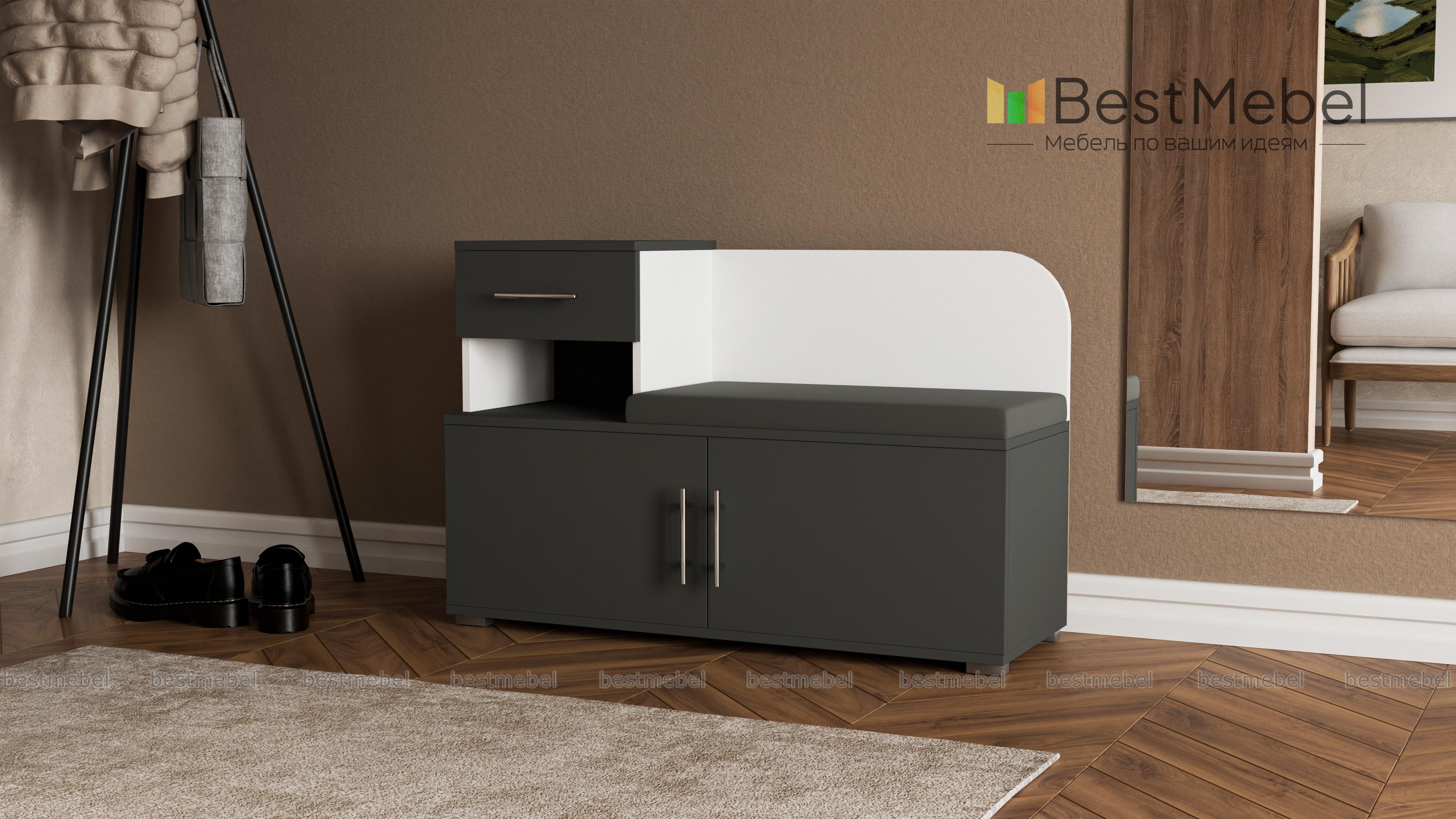 Качественная, недорогая и негромоздкая тумба для прихожей. Идеальный вариант для маленьких прихожих. Материал ДСП хороший. Коже-заменитель сидения достойного качества. Фурнитуру брал стандартную (не вижу смысла доплачивать за доводчики, стандарт тоже - норм). Сборка трудностей не вызывает (все детали и панели промаркированы и подписаны; шурупов и гвоздей производитель положил с лихвой). Полочки съемные - можно поставить даже сапоги. Цена-качество твердое 4,5 из 5.Мелкая инструкция по сборке. Печать инструкции плохого качества.00000593028 Изделие Тумба Аврора BMS (800х690х330).