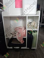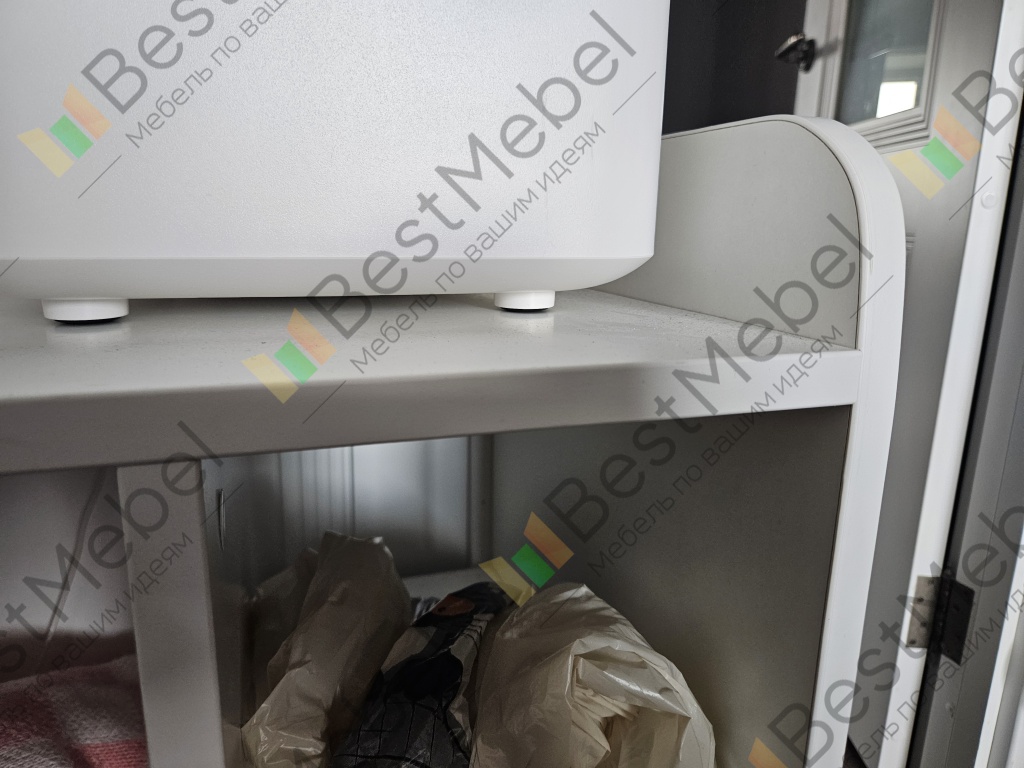 Заказ 00000339793. Аккуратная открытая тумба, без задней стенки. Удалось идеально подобрать размеры, чтобы вписать в пространство у двери, которую никогда не открываем, и тем самым, добавить дополнительные места для хранения. Качество изготовления отличное. Единственное, очень долго делали (порядка 2 месяцев), но это замечание к магазину, а не к товару, поэтому оценку не снижаю.
