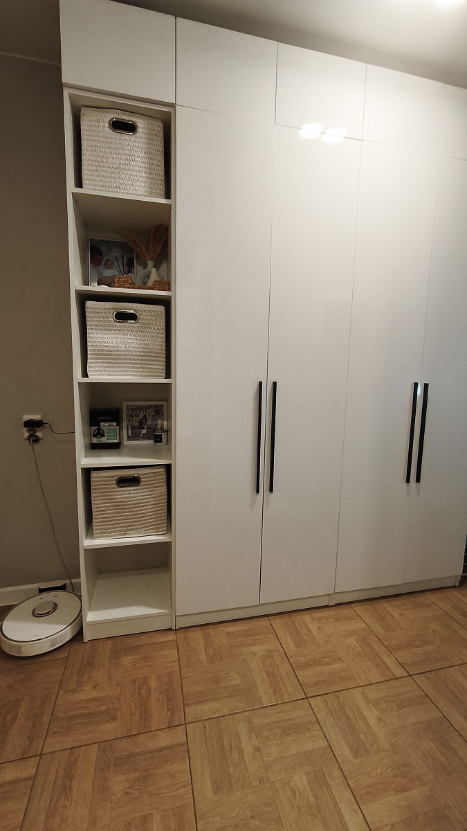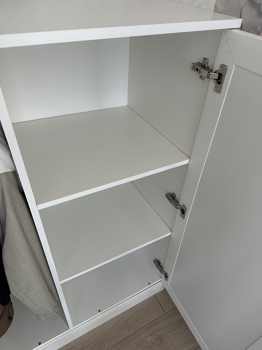 Заказывала шкаф в интернет магазине  производителя, понравилось, что здесь гораздо больше вариант улучшения шкафа под себя, чем в этом же магазине на озон. Заказала по индивидуальным размерам: шкаф стандартный, а антресль высотой 35 см. Фасады выбрала из мдф, выбрала нужные ручки, петли с доводчиками, два выдвижных ящика, для антресоли - систему открывания пуш ту опн, можно было даже толщину кромки добавить! Перезвонили быстро, уточнили все нюансы, о которых можно было забыть, а они важны. Приехал шкаф за 6 дней, упаковка почти вся была целая, мягкий гофркартон в некоторых местах бвл поврежден, но сам шкаф цел, углы деталей были защищены дополнительно пластиковыми насадками. Шкаф собрали быстро мои опытные сборщики, сказали что шкаф достойного качества, все места для креплений были сделаны, крепежей хватило. Из минусов на торцевой части с одной стороны ошибочно сделали дырки для крепежа, получается они были с двух сторон, как будто перепутали, это неприлично, закрыла заглушками, и на этой же стенке очень сильно видны следы клея вместе соединения с кромкой, клей отмывается, но первое впечатление было подпорчено. Вцелом покупкой довольна и могу рекомендовать данного производителя. Любуюсь своим шкафом!