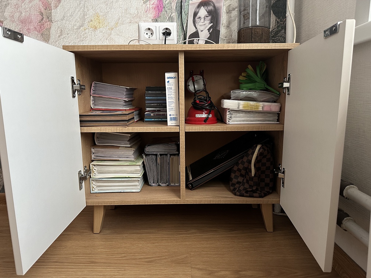 Отличная тумба. Собирается легко. Брала для хранения ниток. На верхний ящик пришлось установить магнит, так как кот очень легко его открывает и спит в нем))). Мой косяк в том, что нужно было глубину делать больше. Не все нитки влезли)))