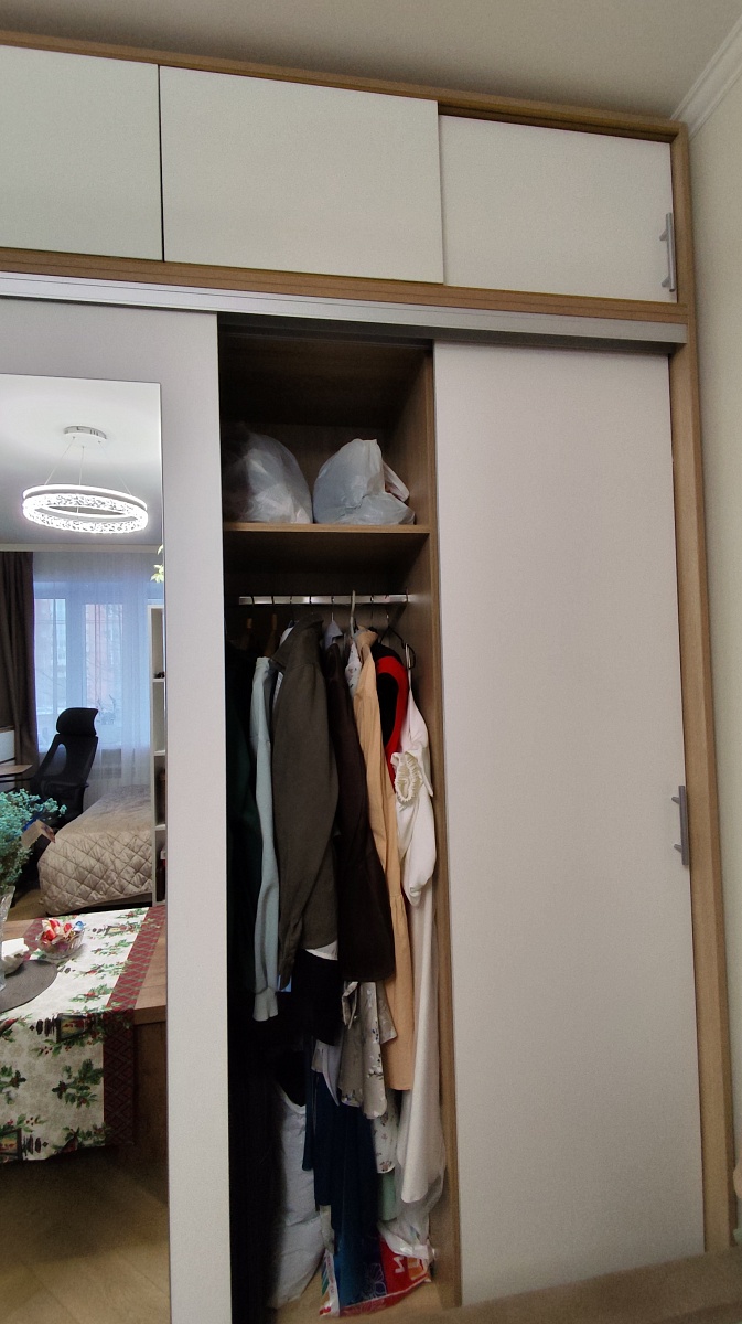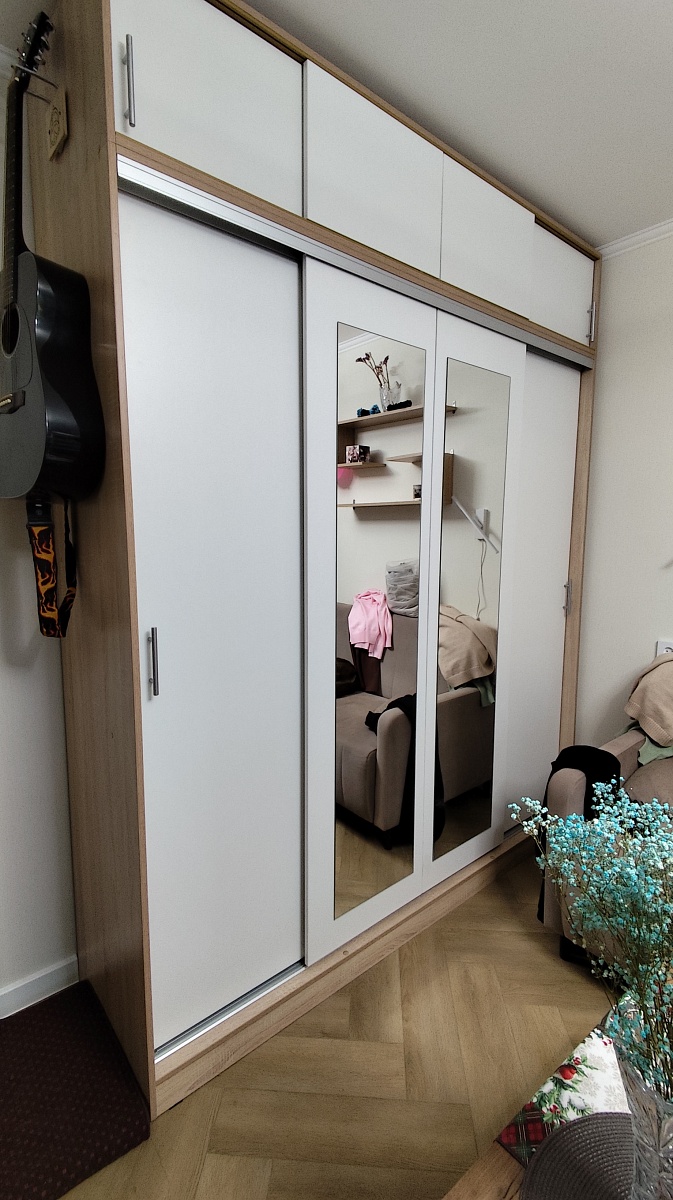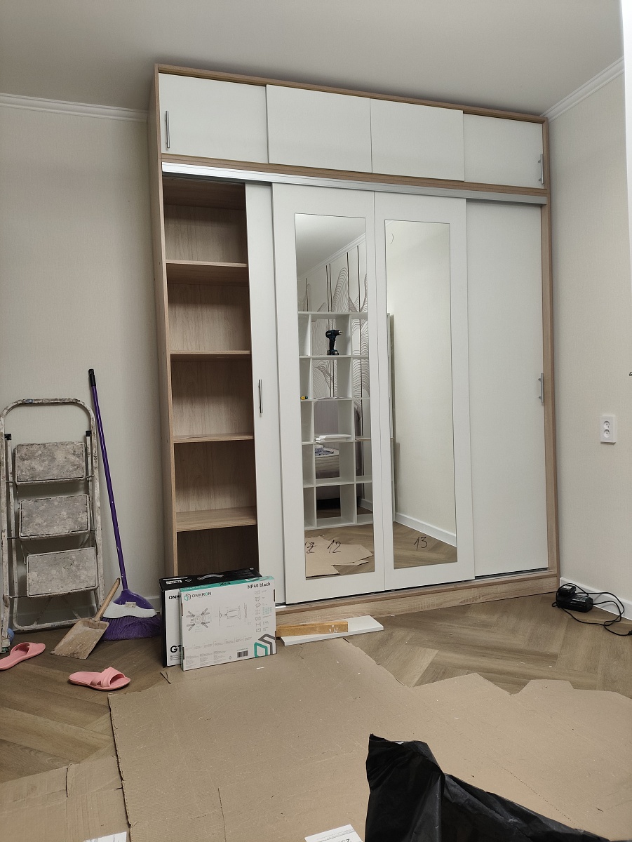 Заказ 00000258491, изделие ЭСКИЗ №00000258491 Шкафы-купе УЮТ 5 BMS (2000х2500х550) (Белье - Платье - Белье (4))Наш второй заказ в этом магазине. Заказывали через менеджера в шоу-руме,  она учла все пожелания по размерам, цвету, фурнитуре и прочему. Можно было посмотреть и потрогать представленные образцы в офисе.Сам шкаф удобный в использовании,  практичный,  много места для хранения, двери двигаются плавно. Были некие косяки по системе направляющих, но мы не придали особое значение, чтобы сэкономить время, купили сами деталь, которая была сломана В целом довольны