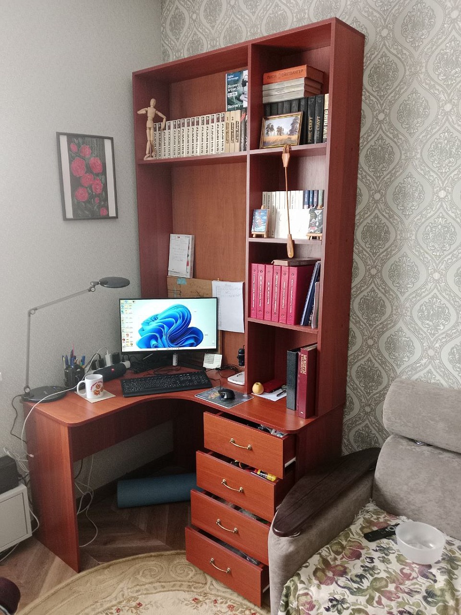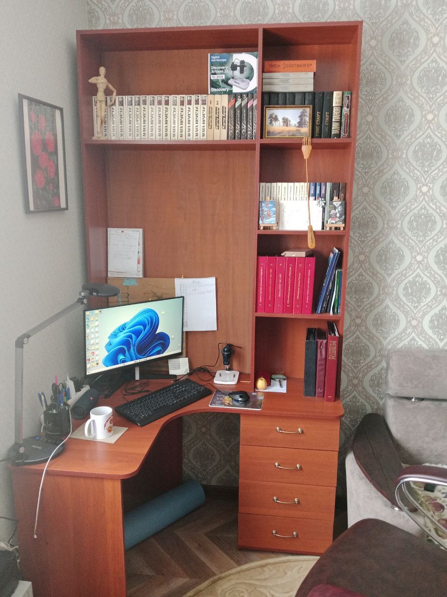 Приобрел стол 52.15 BMS и решил сразу добавить к нему надстройку. Остановился на этой модели. По моим размерам получилось вот такое шикарное изделие. Прелесть данного магазина-изготовление по индивидуальным размерам плюс цвет и фурнитура на выбор. Качество, удобство сборки и доставка на высоте! Молодцы, спасибо за работу! Покупкой очень доволен-теперь это мой уютный уголок для души.