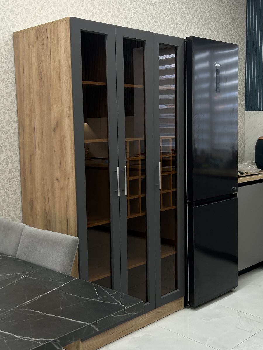 Шкаф понравился. Смотрится очень стильно. Очень удобно изготовление по индивидуальным параметрам. Качество соответствует цене.