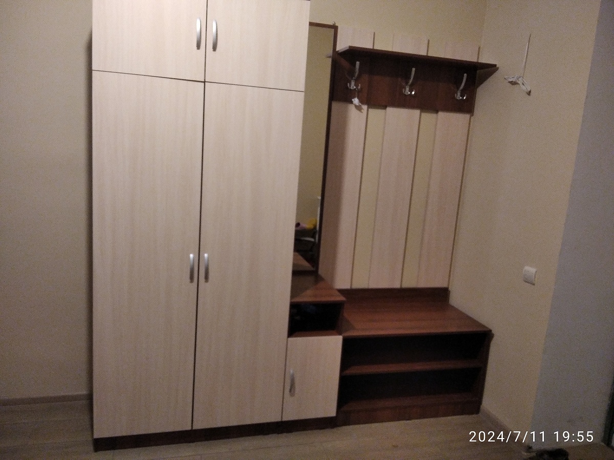 Заказ номер 00000726455.Хорошая прихожая. Не стоит ждать супер качества за небольшие деньги. Качество неплохое, хотя фурнитура так себе( особенно петли), но на первое время подойдет. Собирали самостоятельно, инструкции по сборке нет, есть только схема- общий вид, но собирается интуитивно понятно. Очень порадовало, что сотрудники помогли немного изменить вид шкафа( сделать глубину побольше и штангу для одежды расположить горизонтально) за небольшую доплату. Стоит заказывать если после капитального ремонта или стройки финансов осталось не очень много- то это хороший выход.
