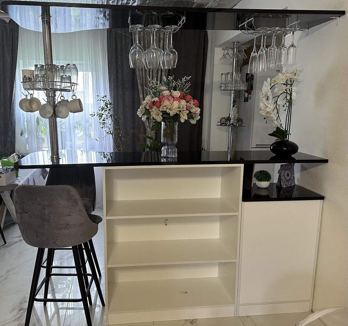 Здравствуйте, заказала барную стойку 22.05.2024, в пользовании 2 месяц, восторг до сих пор! Все гости спрашивают где купила. Очень понравилось общение с сотрудниками, доставка в срок, претензий нет, однозначно рекомендую! Лучшее соотношение цены и качества! Дополнительно купила крепежи для бокалов, барные стулья брала на озоне, измерила на свои крепежи к стене и убрала трубу под стойкой. Комплект был полный, качество хорошее у товара, упаковка без повреждений. Спасибо за заказ!