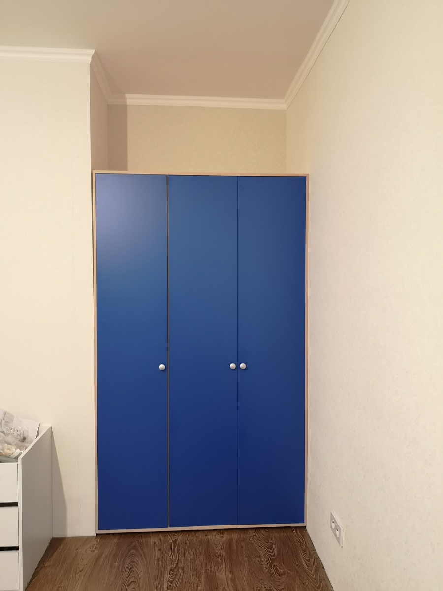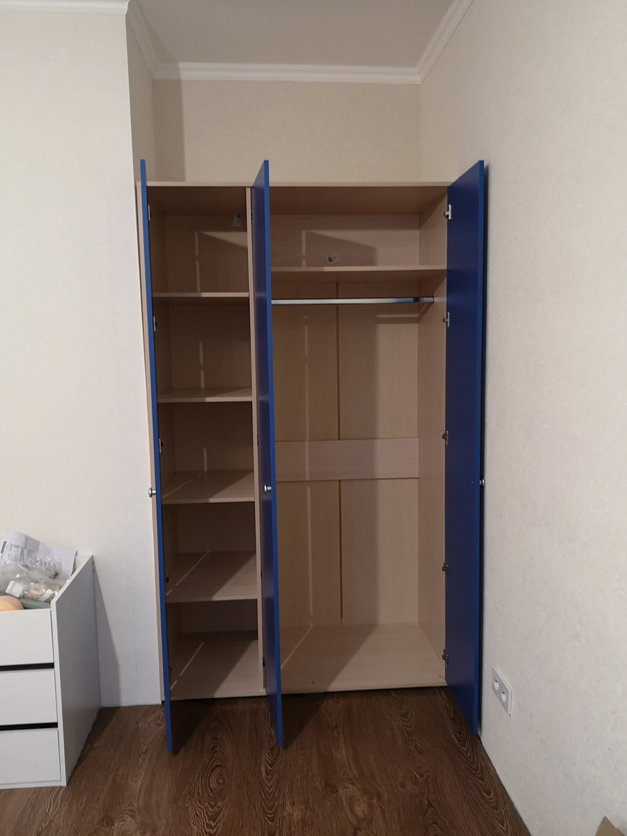 Заказ 00000724769,Распашной шкаф Комфорт BMS вместительный,разложила все вещи.Очень удобно,что можно выбрать цвет на свой вкус,фурнитуру и внутреннее наполнение изделия.Эскиз итоговый согласовали перед производством,заказ доставили быстро.