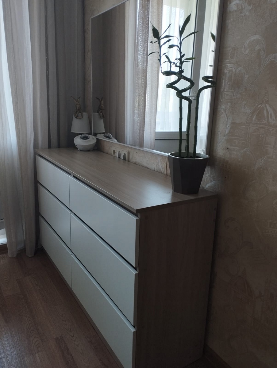 Заказ 00000694204, изделие ЭСКИЗ №00000694204 Комод Нордли Nordli 11 (1500х990х470)Были куплены изначально шкафы - цвет золотой дуб крафт у другого производителя. На разных сайтах искала возможность изготовить комод такого же цвета по своим размерам (стоимость получалась дороже, чем я отдала за шкафы )). Случайно наткнулась на бестмебель. Выбрала цвет, свой размер и то, что хочу. Т.к. основной критерий- ящики для нижнего белья и полки для хранения постельного белья и подушек. Единственное, что докупила отдельно - ручки. Т.к. у шкафов уже ручки были. Привезли всё в срок, мой папа собрал его. Я очень довольна .