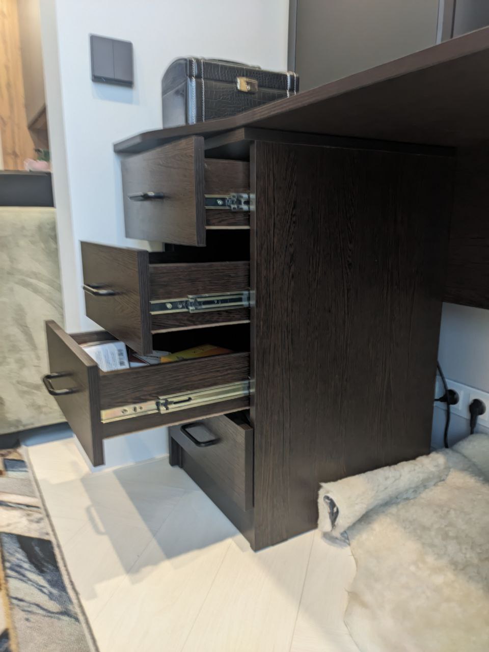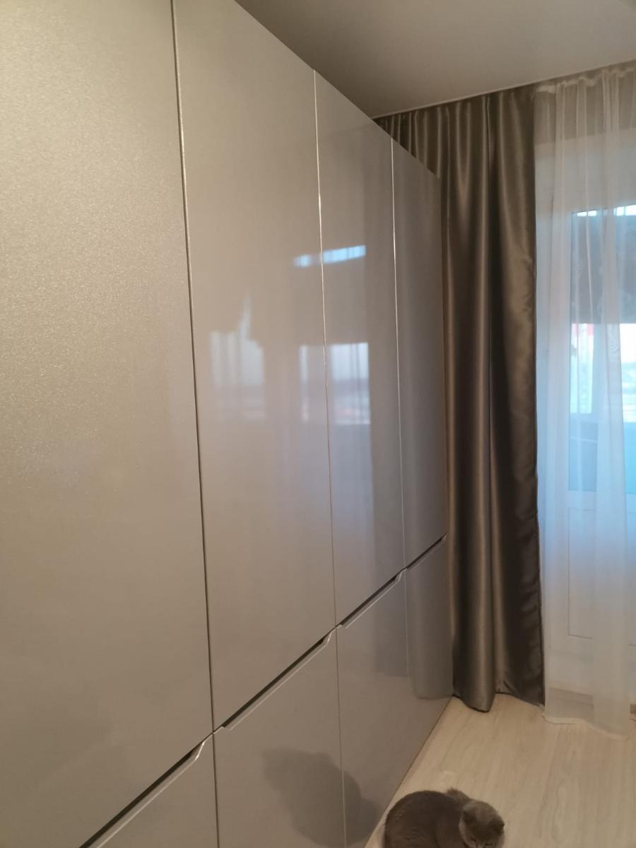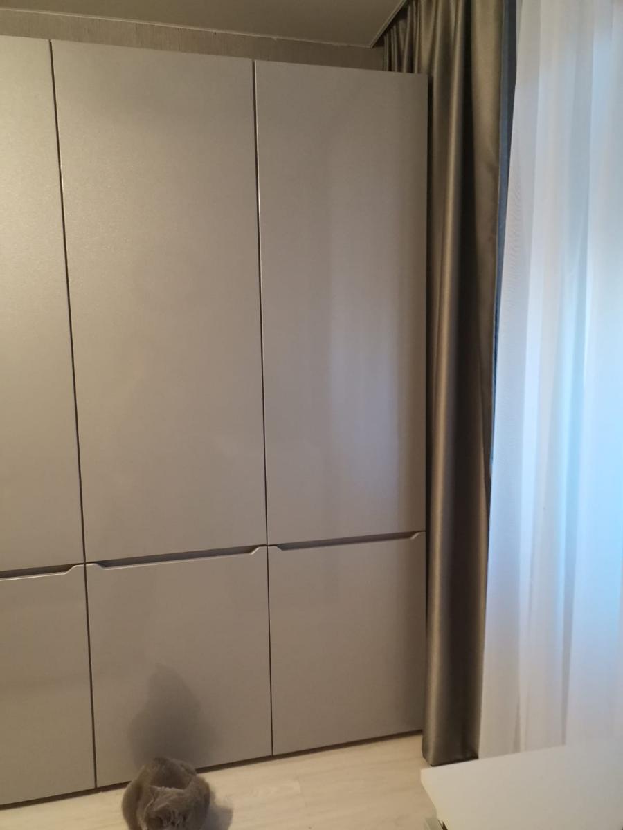 Получился отличный шкаф по моим размерам. Из минусов — странная конструкция купе-дверей. Когда открываешь, дверь съезжает со стопора с небольшим рывком. Мастер предупредил, сказал, что такая особенность механизма. Но мне кажется, можно было бы придумать что-то более плавное. Если бы была опция выбирать конструкция, я бы переплатила, но взяла что-то более удобное.