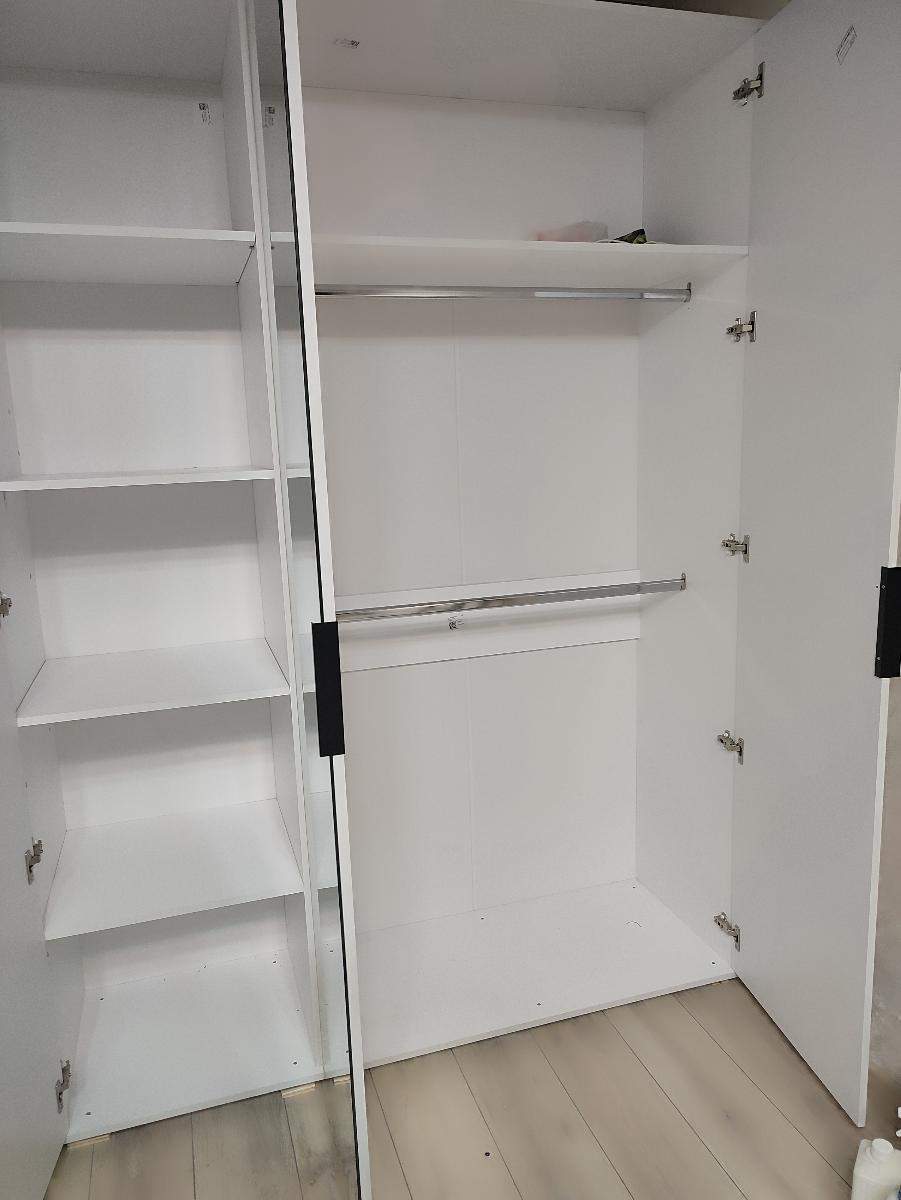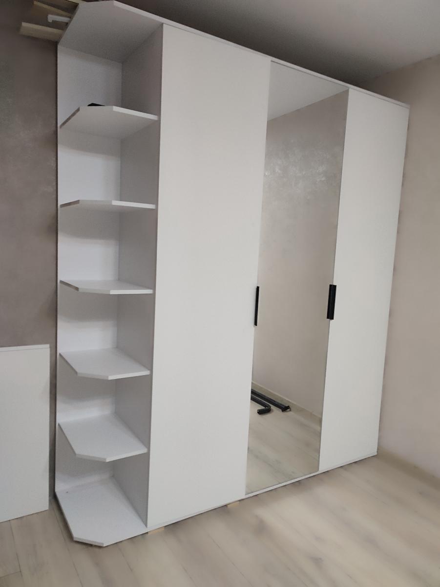 Распашной шкаф Альма 10bms, заказ 00000577558, брали в комплекте с кроватью. Нам подошёл прекрасно по размеру в комнату, встал как влитой. Удобные полочки с боковой стороны шкафа. Вместительный, просторный. Собирали самостоятельно, сложностей со сборкой не возникло.