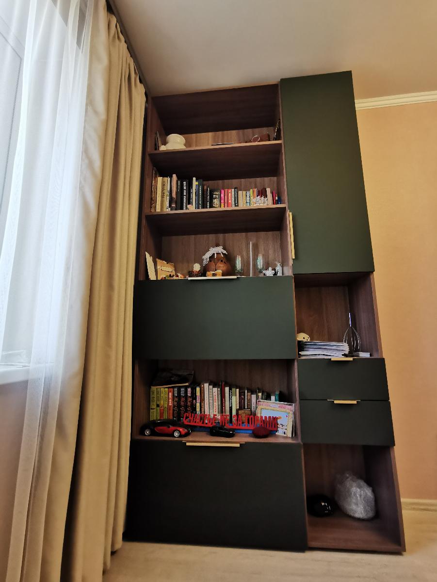 Обычно отзывы не пишу, но тут сделаю исключение. Гостиную делали по моему проекту, хотел по максимум до потолка и в ширину комнаты. По ширине зазор до трубы составил всего 3 миллиметра, до потолка 10 сантиметров. Мебель поднимали грузчики около часа (В лифт не помещалось из-за большого размера), их было очень жалко, т.к. очень тяжелые коробки были. Когда уже её начал распаковывать сборщик (Александр – вообще мега человек, в одиночку всё это собрал, я сперва ему не поверил, что он один её соберёт). Из-за размера под потолок её собирали уже на месте стоя (Собрать на полу не получилось бы из-за высокого размера). Так же в квартире кривые полы, и сборщик как мог это исправил (Вернее исправил очень хорошо). В итоге я остался очень доволен. Был нюанс, что в комплект не доложили петли угловой, но сборщик сам об этом уведомил компанию, и мне их довезли и сборщик приехал поставил дверь. Мебель очень добротная (недавно маме обустраивал квартиру и видел, что продаётся в других местах). Всем советую!