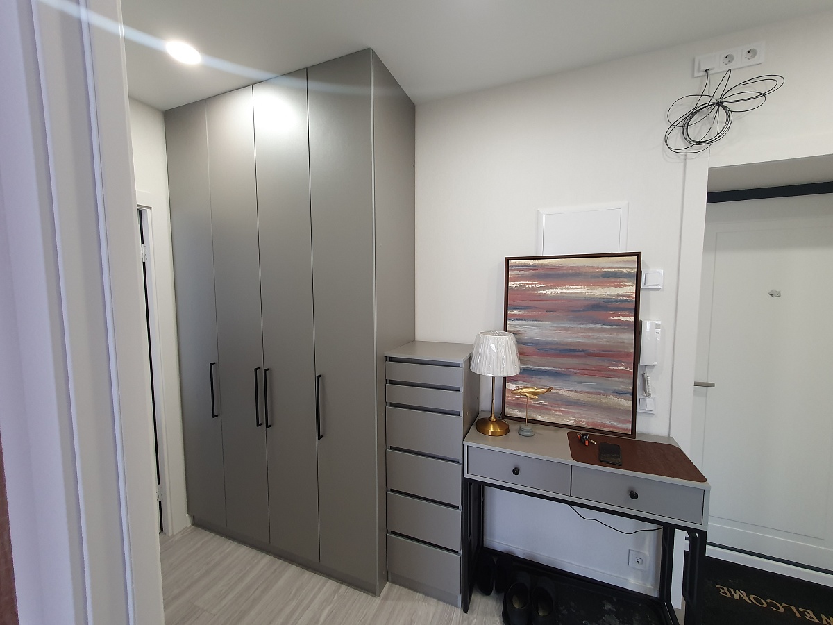 Шкаф распашной Остин Лайт 3 BMS (1400х2600х500). Прекрасный шкаф, хорошее качество исполнения. Прихожую обставила всю из Бестмебель (интересовал именно функционал: чтобы было куда сложить шапки, шарфы(ящики комода), повесить одежду (шкаф), бросить бумаги и сумочку по приходу (консоль)).Был брак на средней дверке на самом видном месте на уровне глаз, попросила заменить-заменили в кротчайшие сроки+доложили петли на две двери(12штук)- изначально их положить забыли, выяснилось в ппоцессе сборки только.Сама заменила штангу (в цвет, с покрытием), "родная" не нравилась-очень уж сильно об нее гремят вешалки.Заказом довольна, рекомендую👍. Огрехи есть, но если не на видном месте-закрываем глазки😉, цена устраивает.