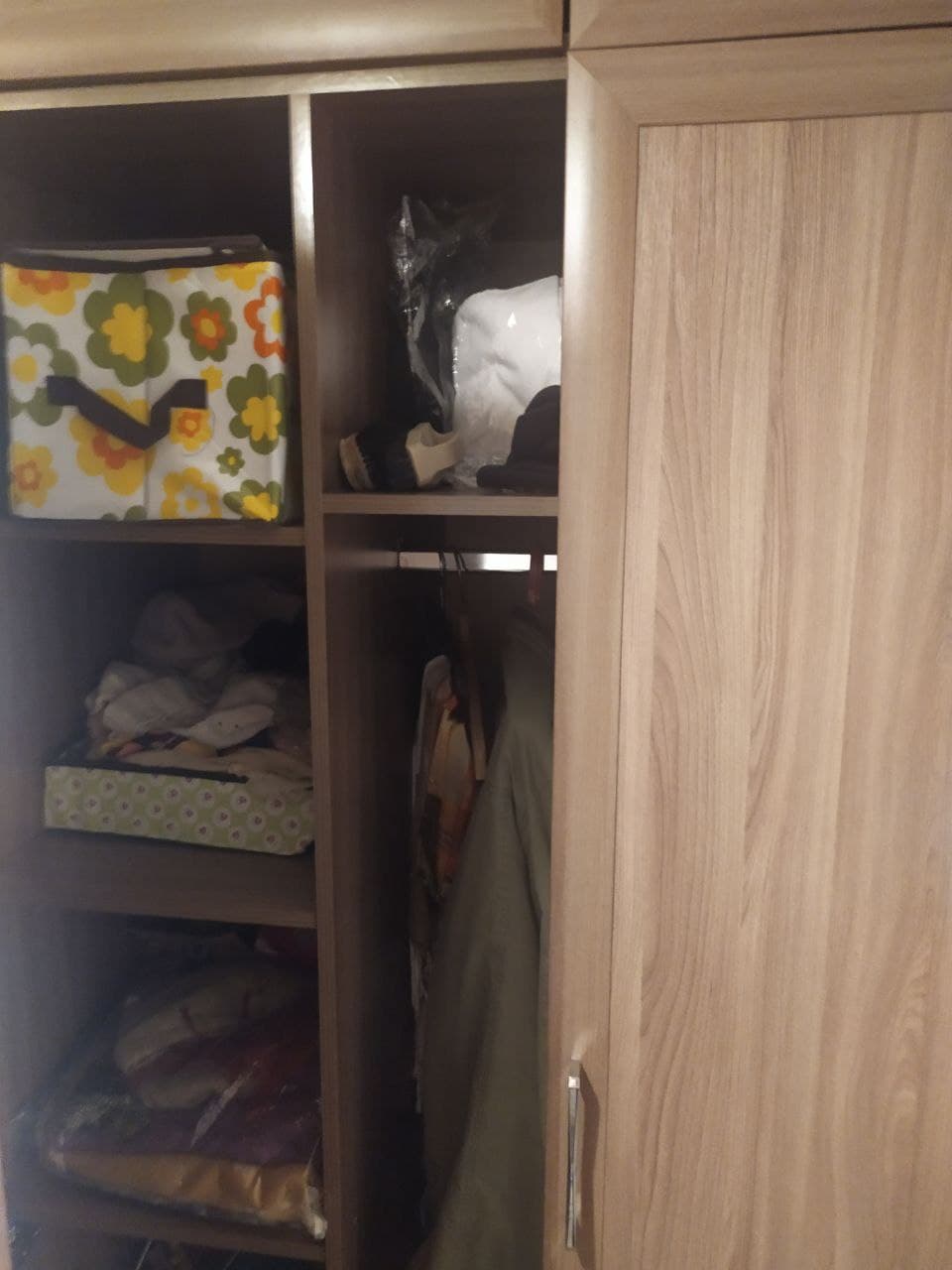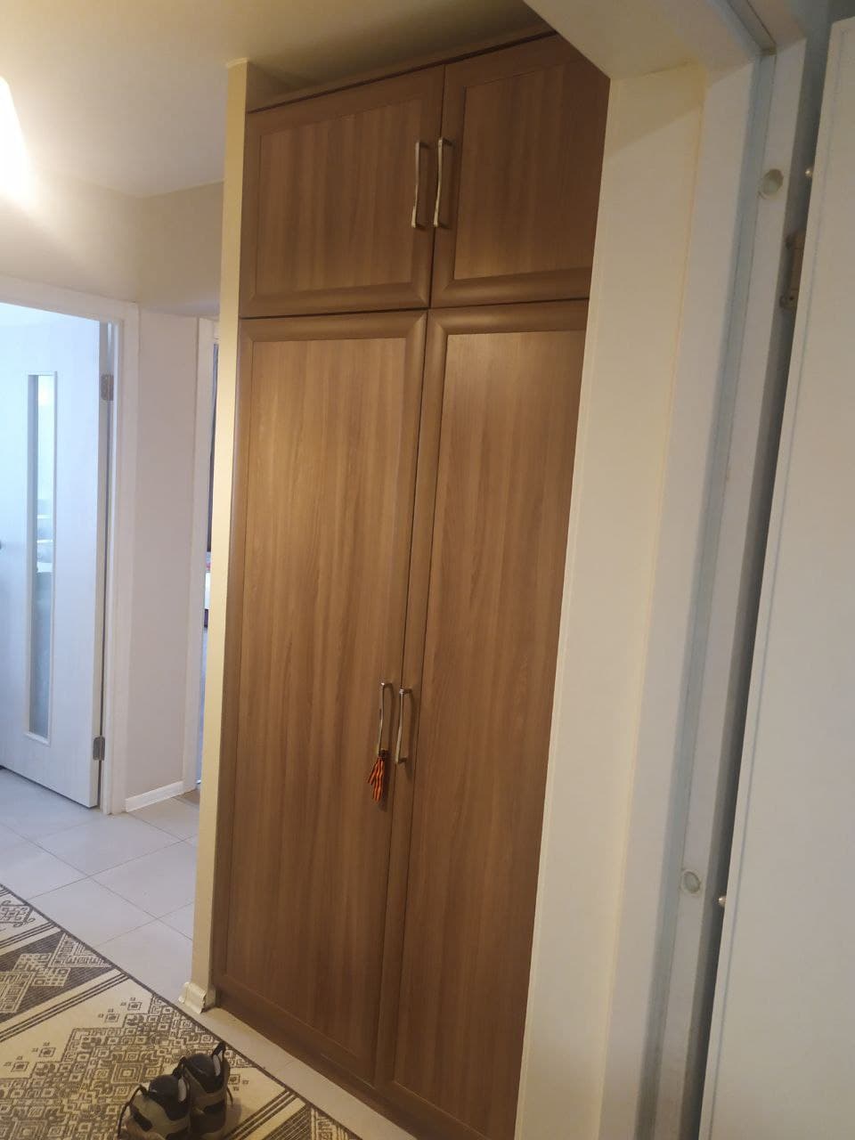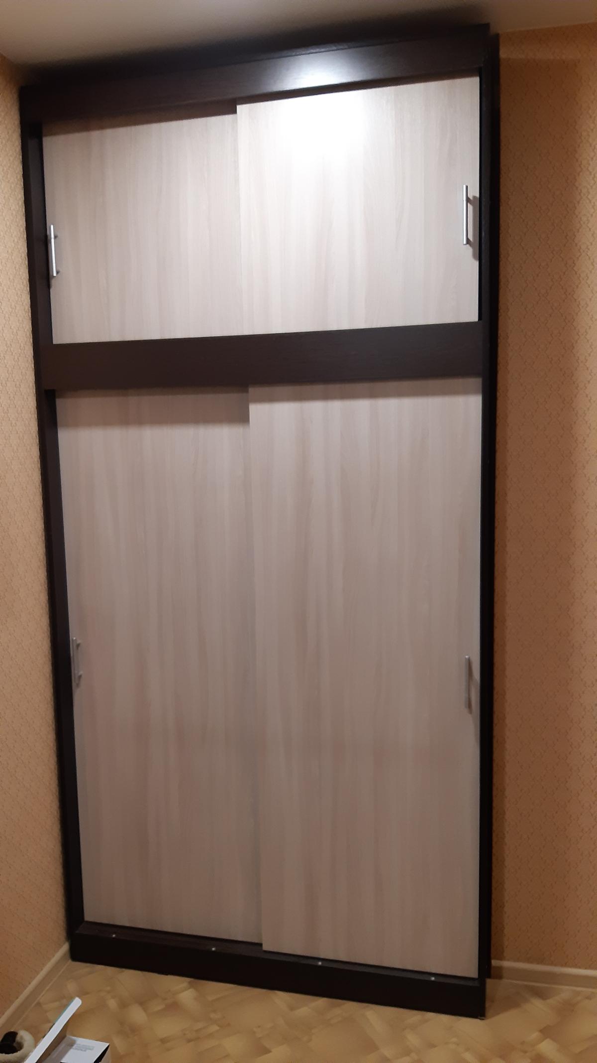 В нишу в квартиру нужен был шкаф точно по размеру. Так как в итоге почти всю мебель в комнаты брали тут на фабрике (очень уж хорошо получается все добротное. в одном стиле, по размерам и наполнению меняется по твоему желанию), то и этот шкаф брали тут. Специально не купе, и не зря - много петель, вместительные антресоли. А рамка и ругой цвет (шимо темный)очень хорошо вписали цвет. Размеры сами называли, можно было на 5 см повыше. Ручки стандарт ужас, поменяли по совету менеджера на очень удобные. При заказе попросила выслать на согласование эскиз. потом еще 3 раза с мамой высоту антресоли меняли ))))За пол года (включая зиму) никаких видимых нареканий, наоборот, только хорошие впечатления. Очень легко подобрали тумбу и коврик по цвету, легко сочетаются.
