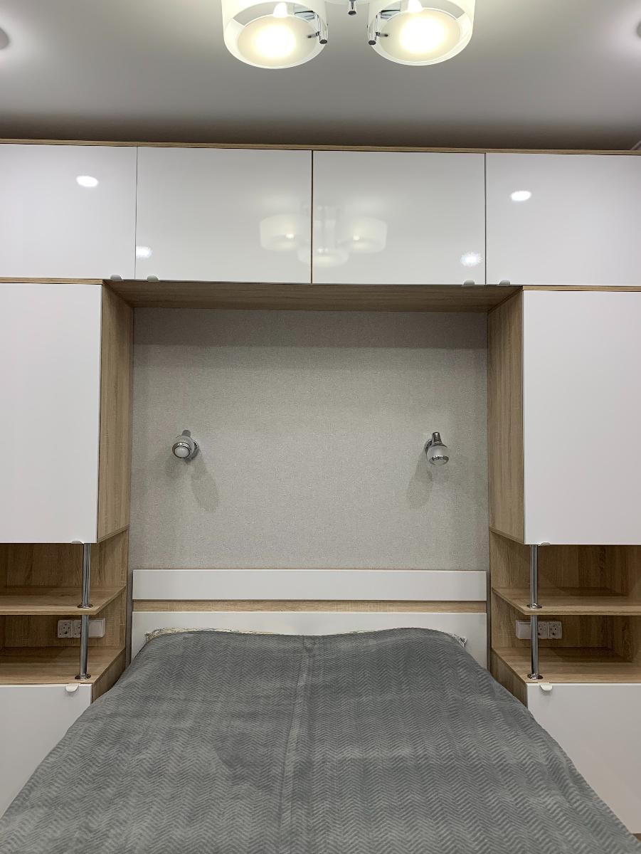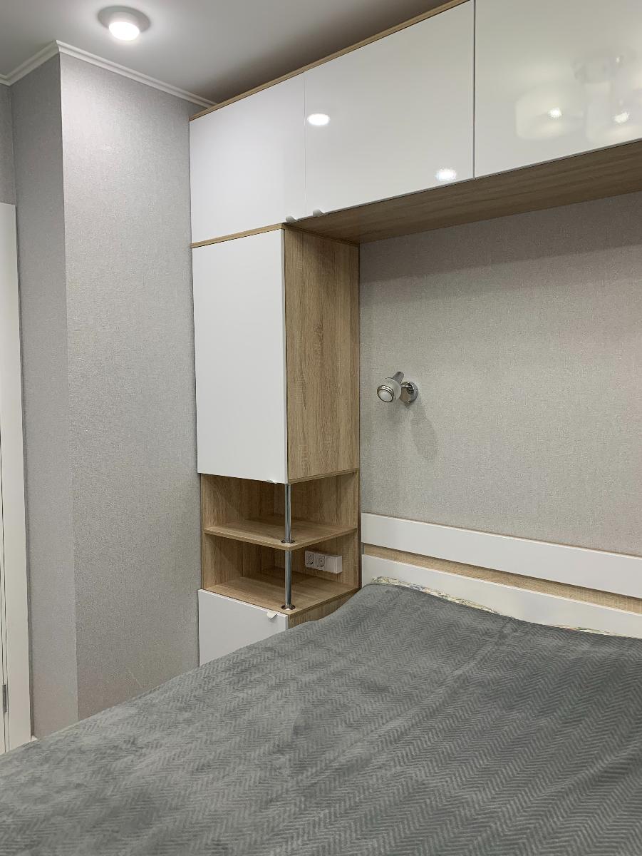 Заказывала себе спальню, которую собрала из разной мебели. Использовали эту антресоль, и расположили ее над кроватью с опиранием на пеналы. Благодаря возможности магазина использовать свои размеры, выбирать цвет и конструктивные детали, материал, то получилось очень здорово. Причем мы семьей сами все собрали и установили. Спасибо магазину, будем дальше пользоваться этим магазином. Очень довольна отношением к клиентам, все детали уточняли и все пожелания учли. Для изготовления мебели есть возможность выбрать ДСП или МДФ. Каркас заказали из ДСП, а дверцы из МДФ. Вся мебель была аккуратно упакована в картон, доставку сделали прям в квартиру. Спасибо большое и успехов коллективу.