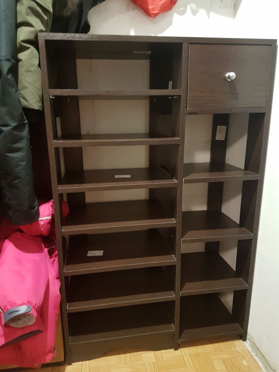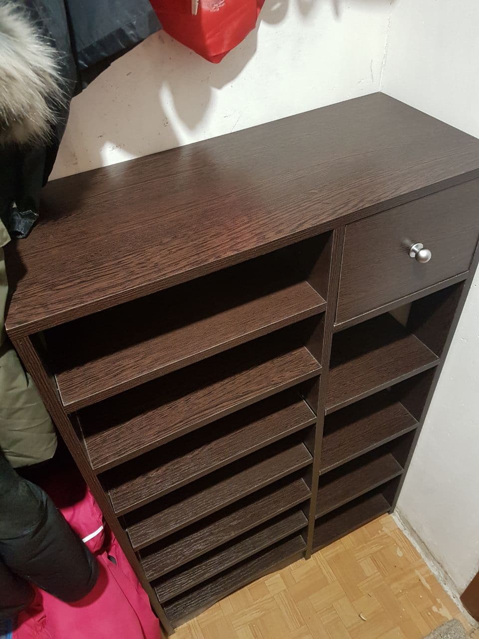 Вполне добротная обувница по приемлемой цене.Много полочек для обуви + ящик для разных мелочей.Очень удобно, что через конструктор сайта возможно заказать необходимые размеры изделия и выбрать цвет. Собирал сам по инструкции, все отверстия и стыки были исполнены производителем четко, поэтому сборка прошла быстро и без проблем. Доставка тоже не подвела, привезли пораньше, чем изначально обещали. Магазину Спасибо!