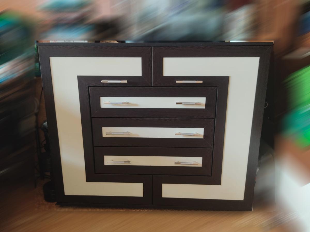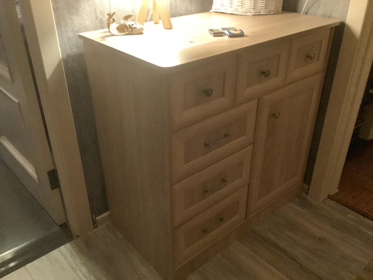 Комод очень понравился. Возможность изменять размер выбранного предмета по своим параметрам. Выбор цвета изделия, оформления (окантовка, рамки и т.п.), фурнитуры - вообще восторг!!! Покупала комод, прихожую, полку, дверцы шкафа, зеркало. В подарок получила тумбу лофт. Все отлично, в оговорённые сроки, немного задержали зеркало, пришлось поменять модель. На каждую позицию высылают чертёж на согласование. Менеджеры работают отлично, постоянно на связи. В перспективе планирую ещё сотрудничать с этим магазином.